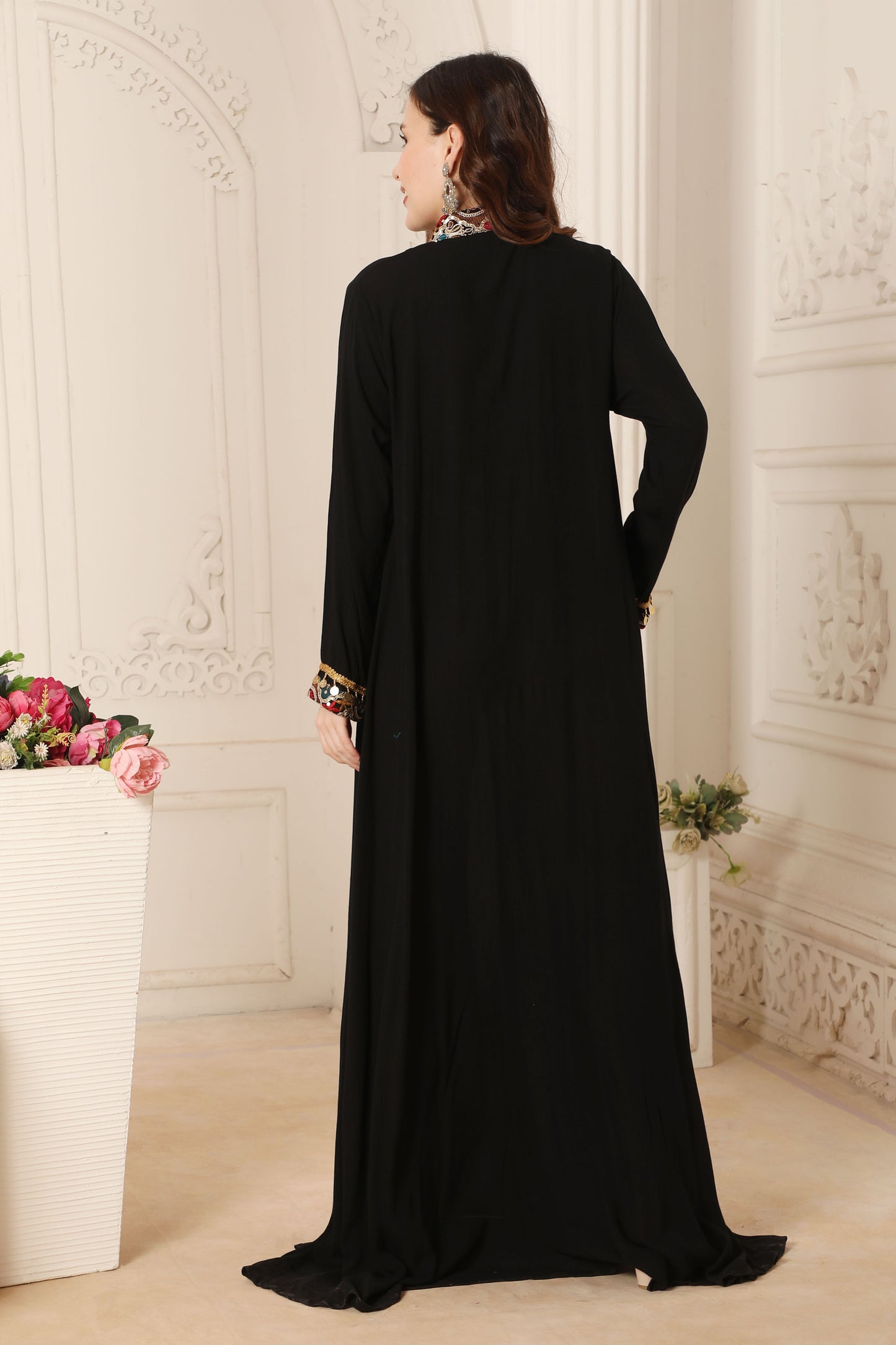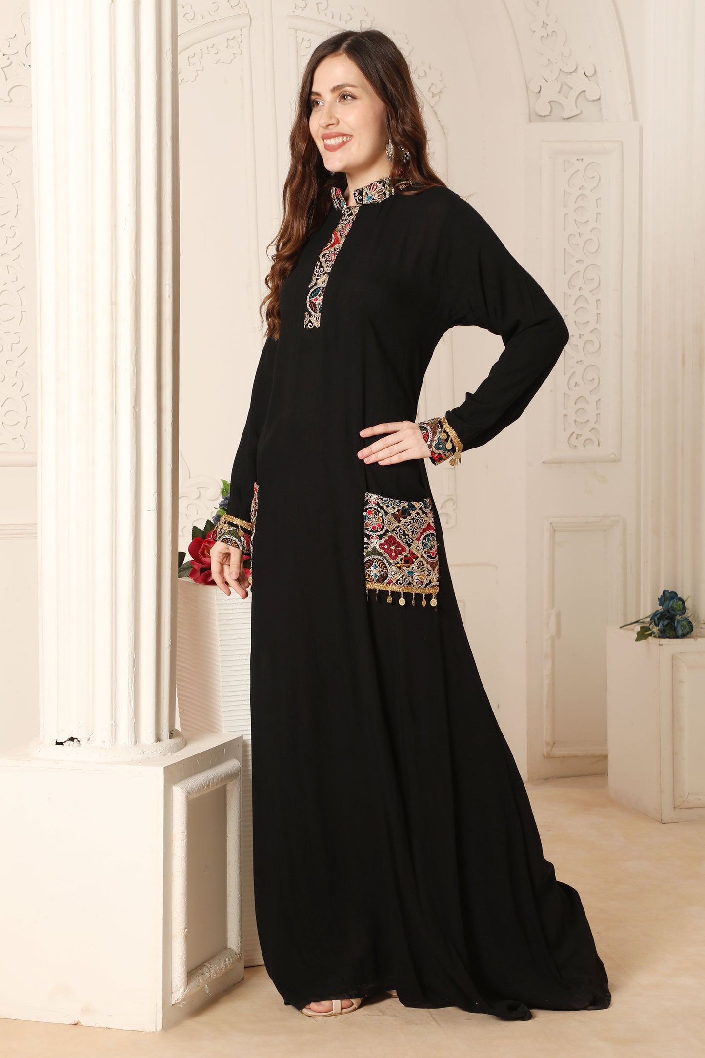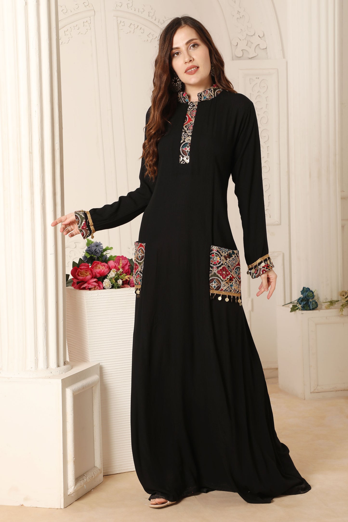 Tribal Embroidered Black Dress with Tassels |