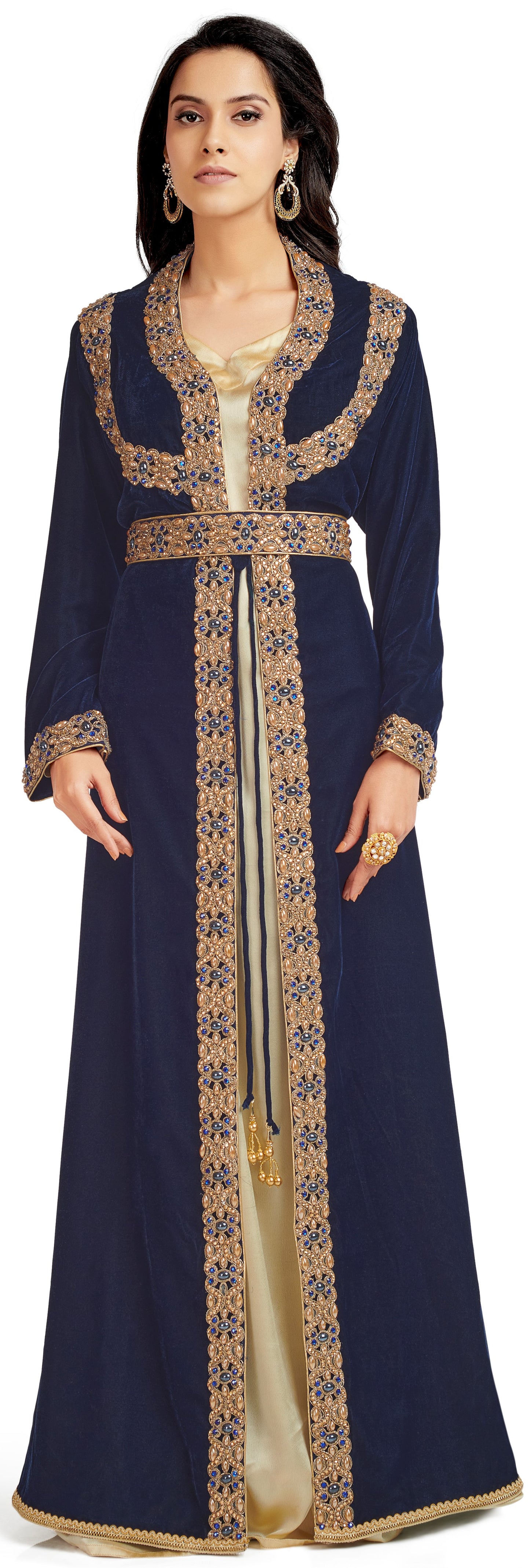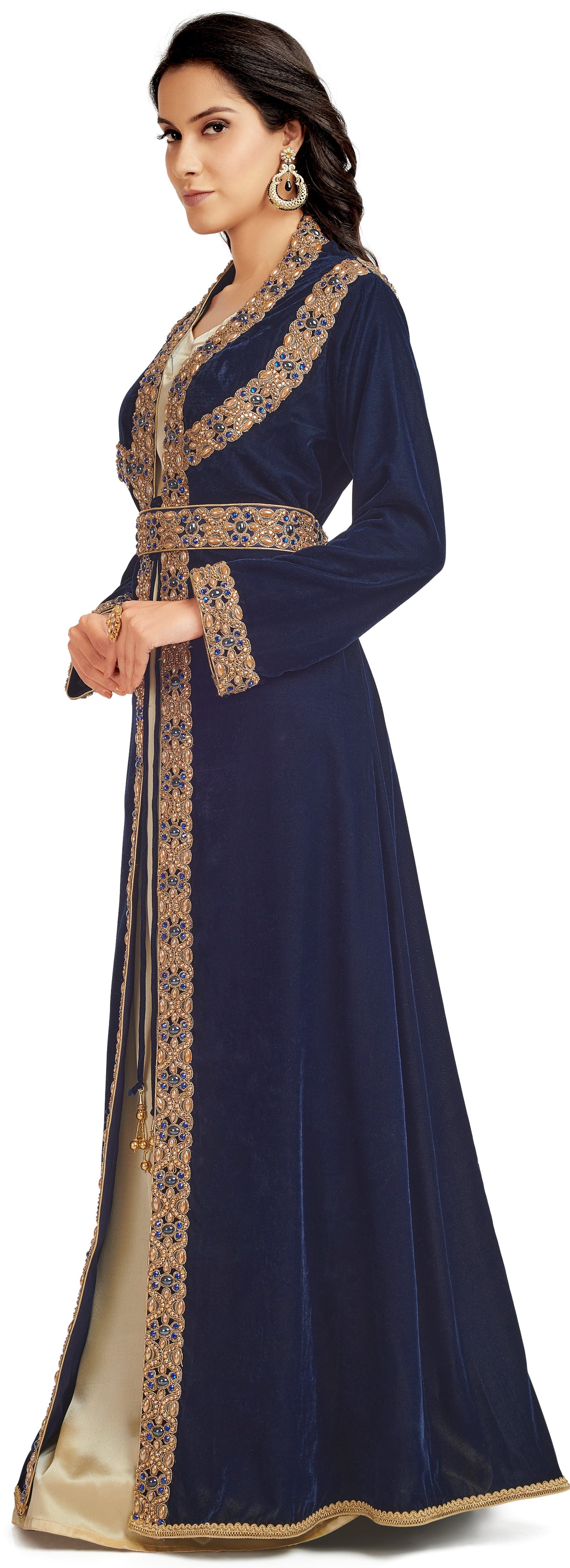 Blue Velvet Takchita Kaftan in 3 piece |