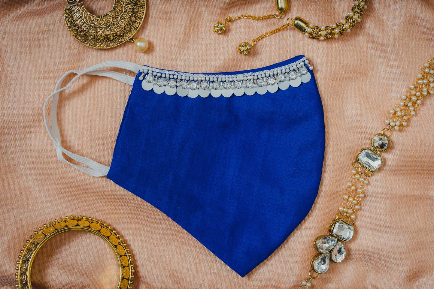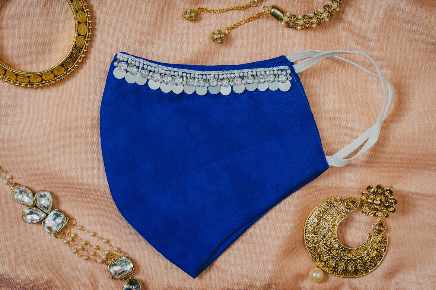 Hanging Tassel Embroidery on Royal Blue Cotton Face Mask - Maxim Creation