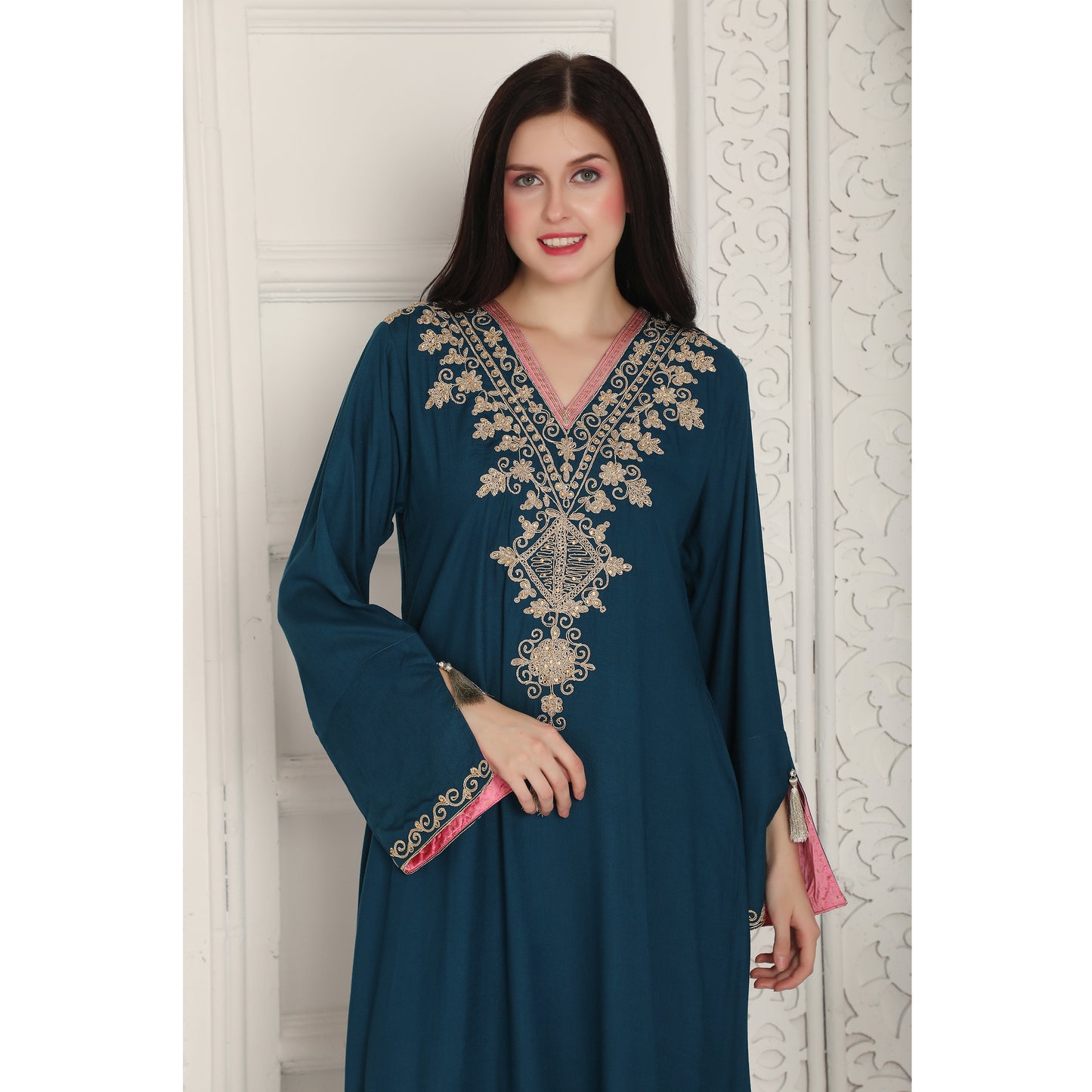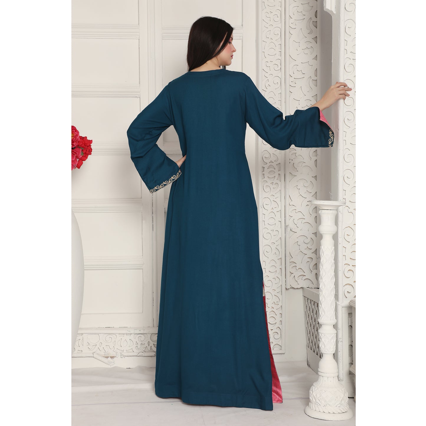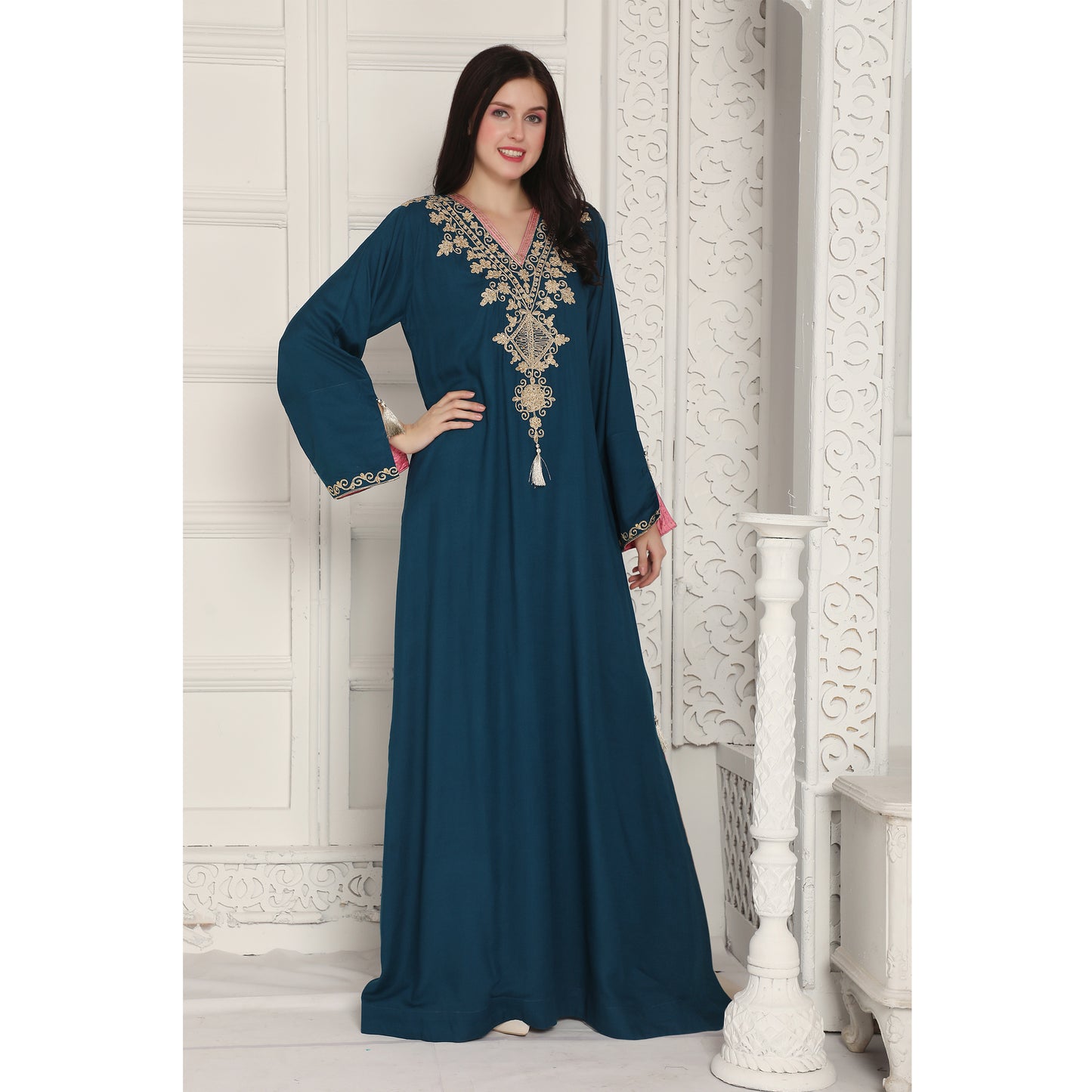 Peacock Blue Arabic Style Kaftan Farasha |