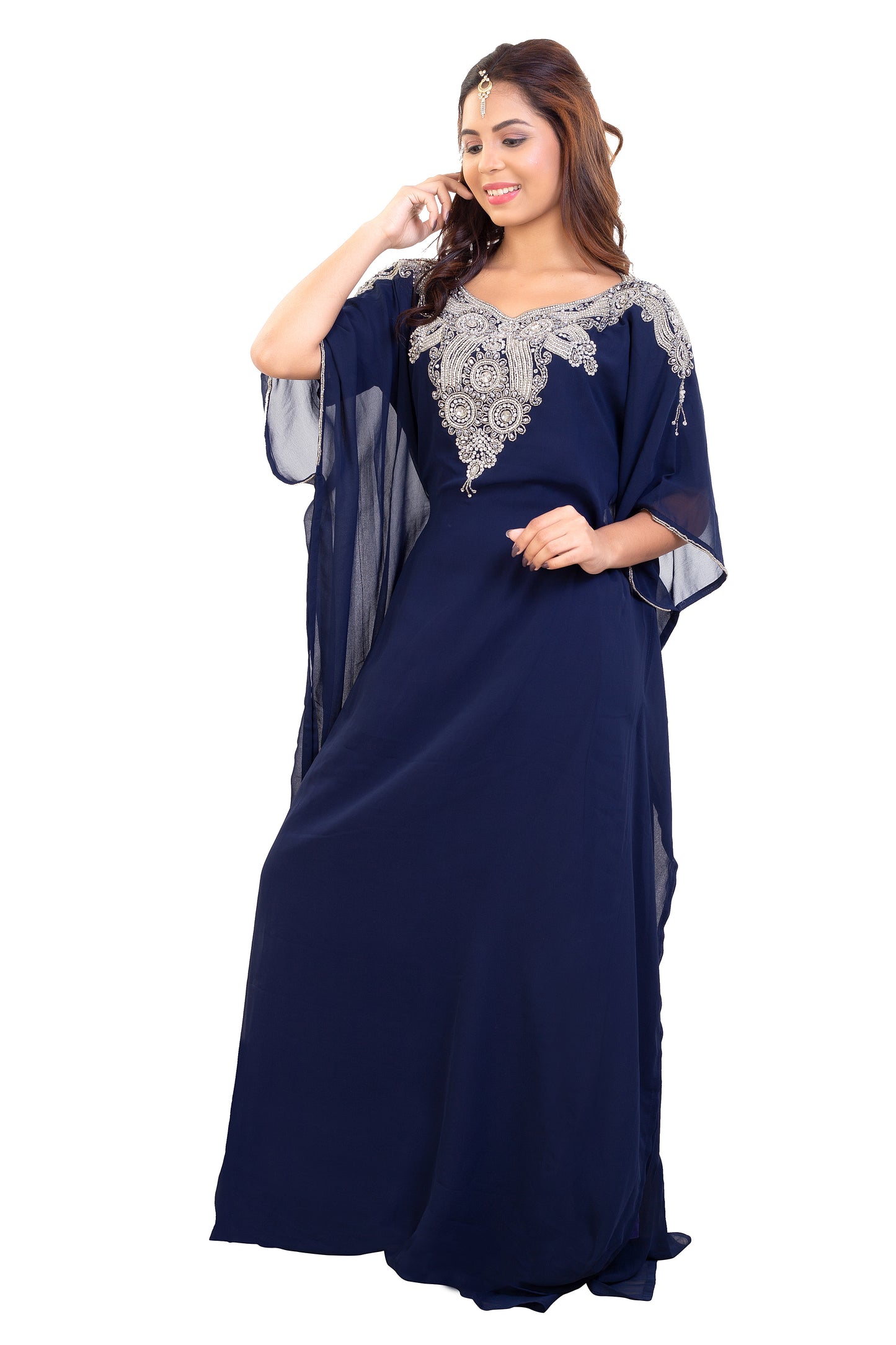 Poncho Dress Navy Blue Long Maxi Gown |