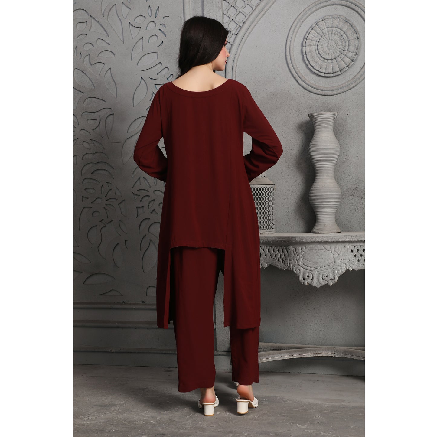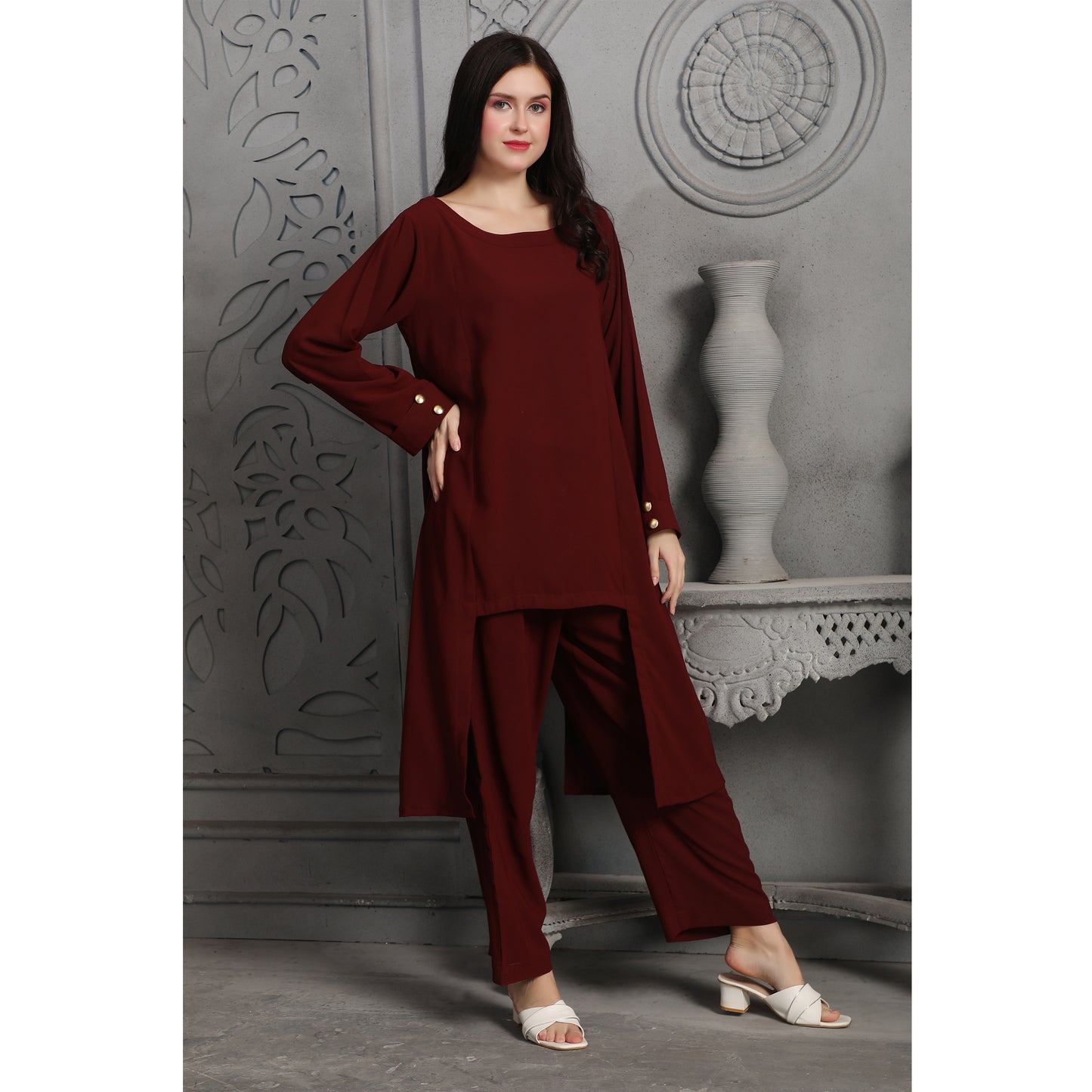Designer Pant-Top in Deep Maroon Coord Set |
