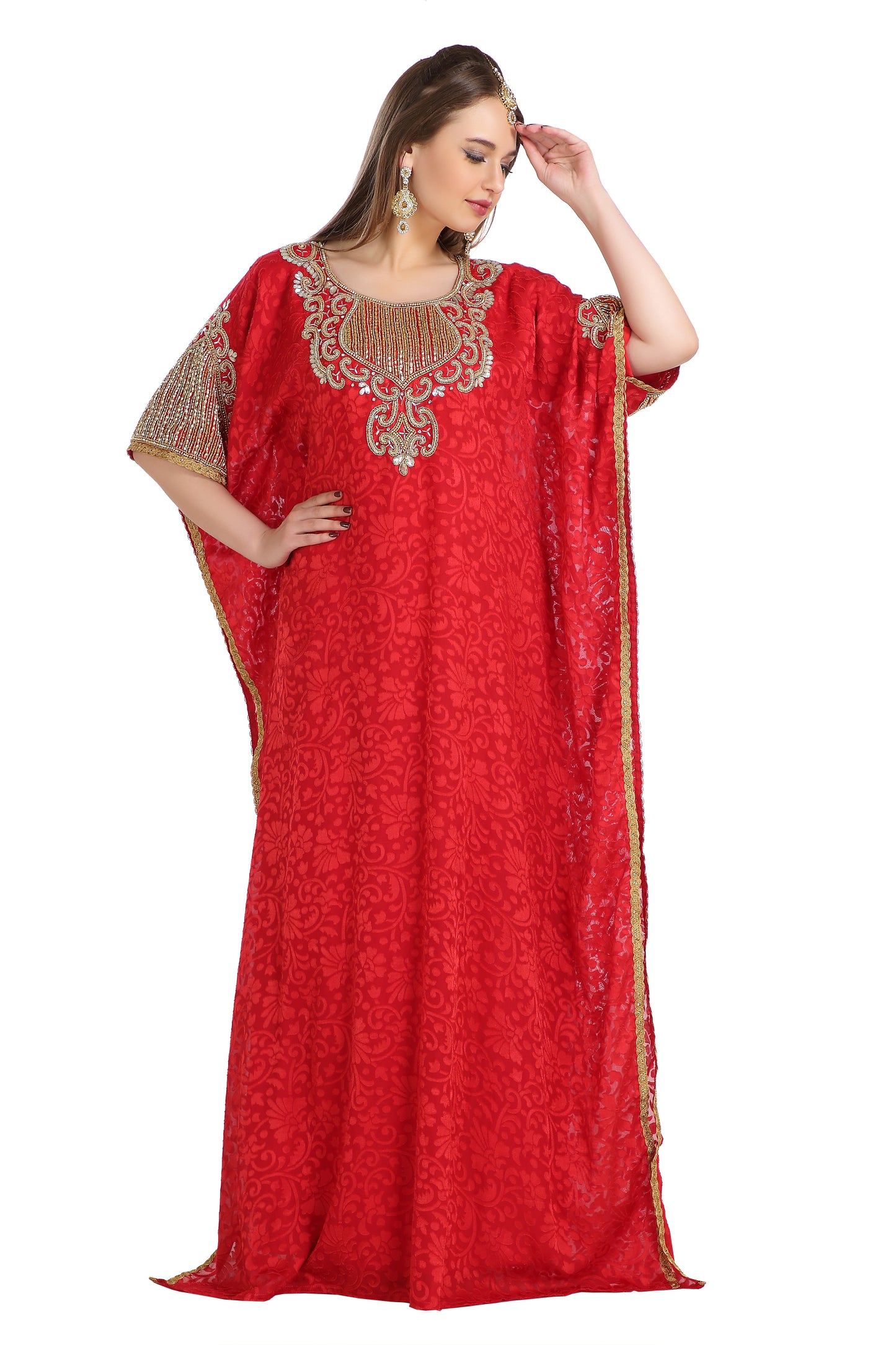 This attractive pleasing-to-the-eye attire is the ultimate dress for all occasion, with the unique golden & silver sequins and beads. The golden & silver hand embroidery outfit remains the best in the stylish kaftan production sector. The red coloration, as well as brasso kaftan maxim creation’s innovation is irresistibly new and ought to be ordered as a 1 piece set, half sleeve kaftan . This dress has inside lining to give the user enough comfy. You can’t afford to miss this brasso kaftan fabric dress. |