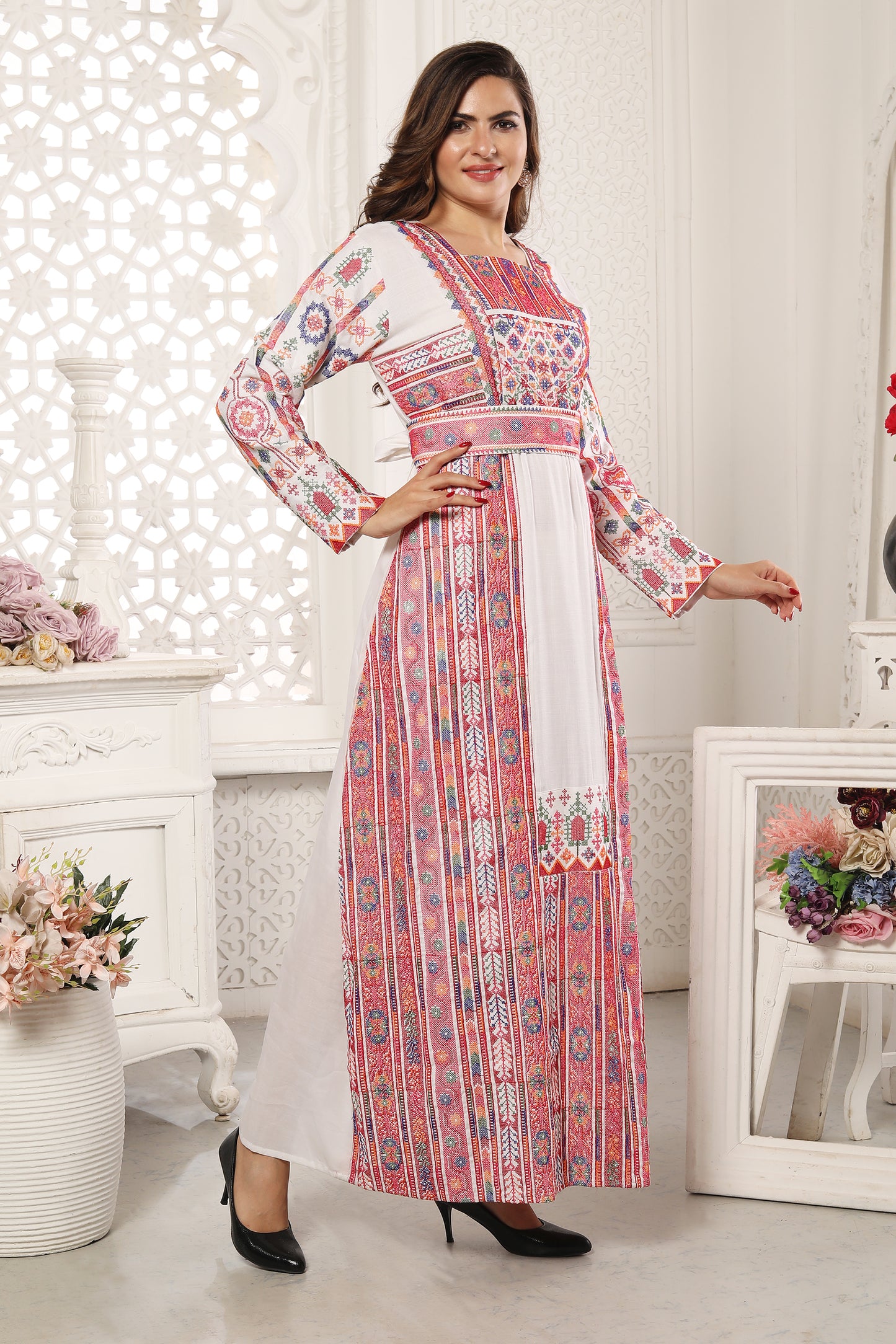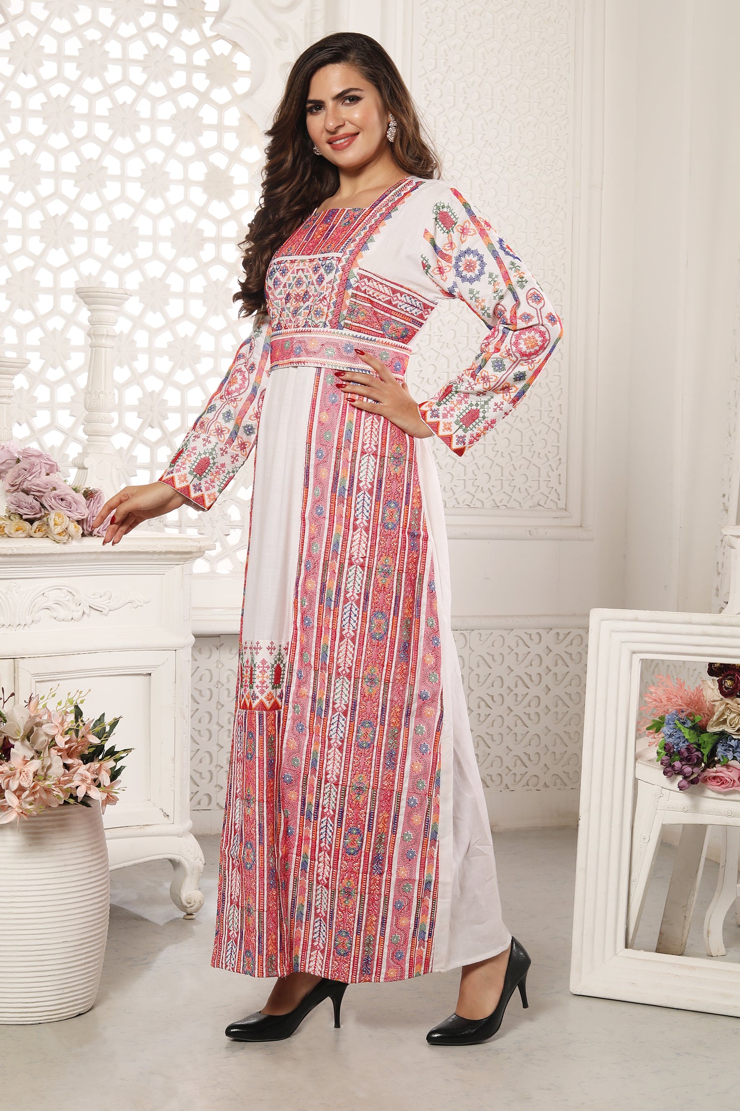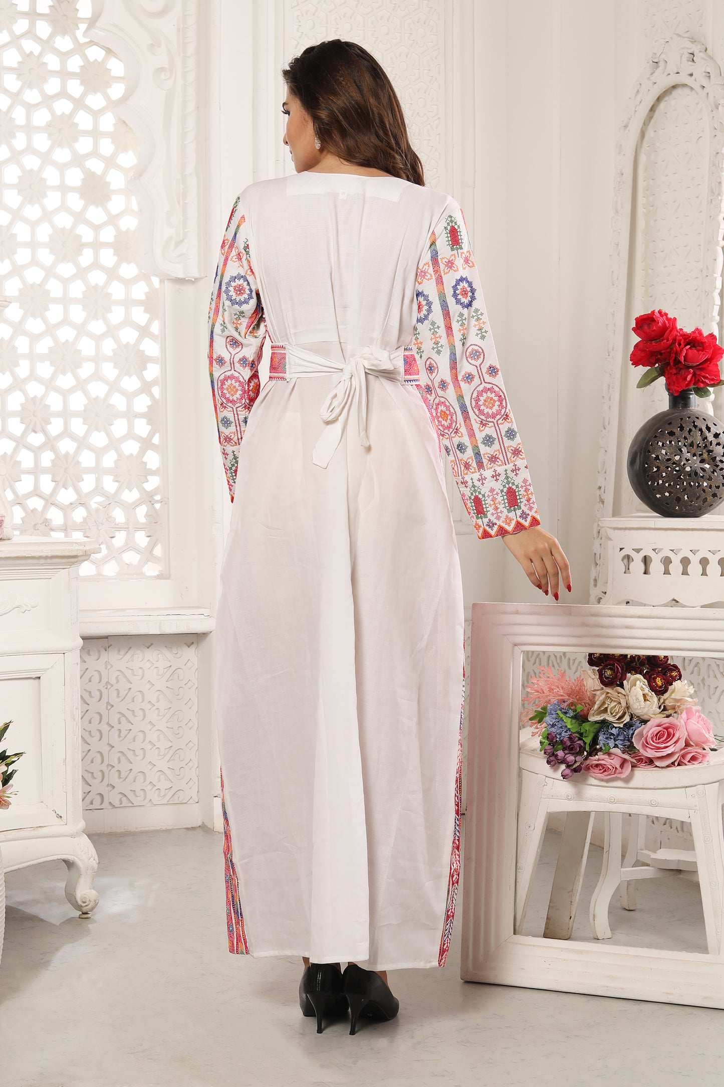Multicoloured Tatreez Cross-Stitch embroidery Thobe Kaftan Malaka Gown