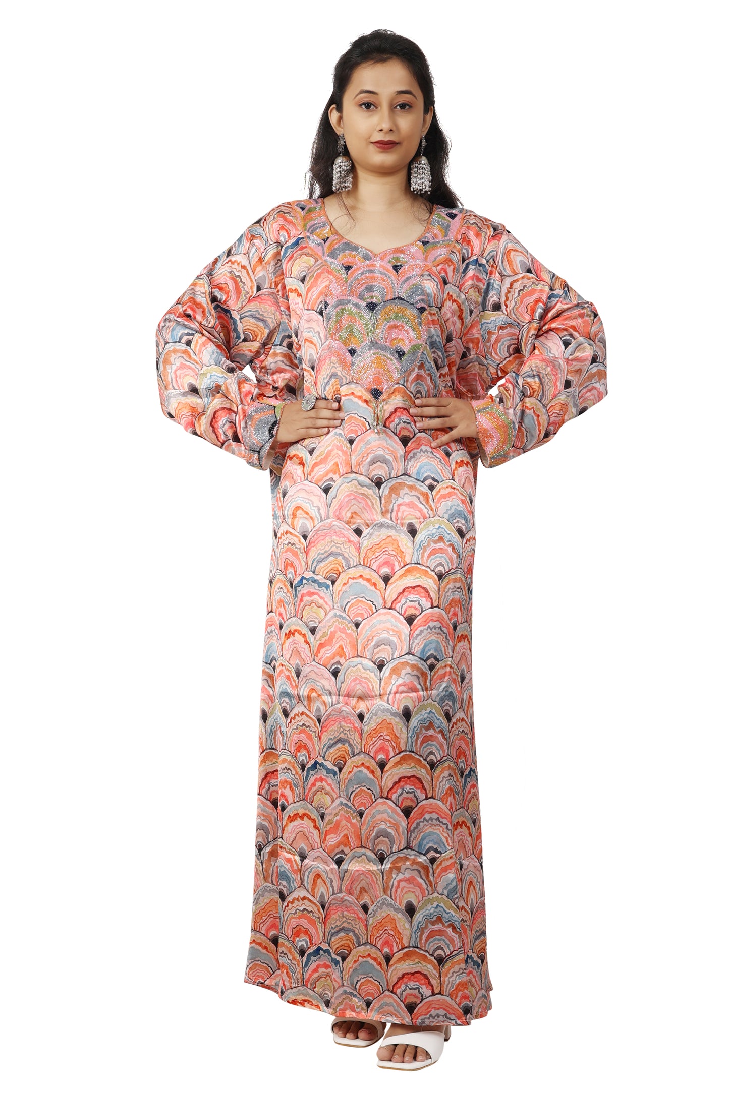 Dubai Farasha Peacock Print Tea Party Gown By Maxim Creation |