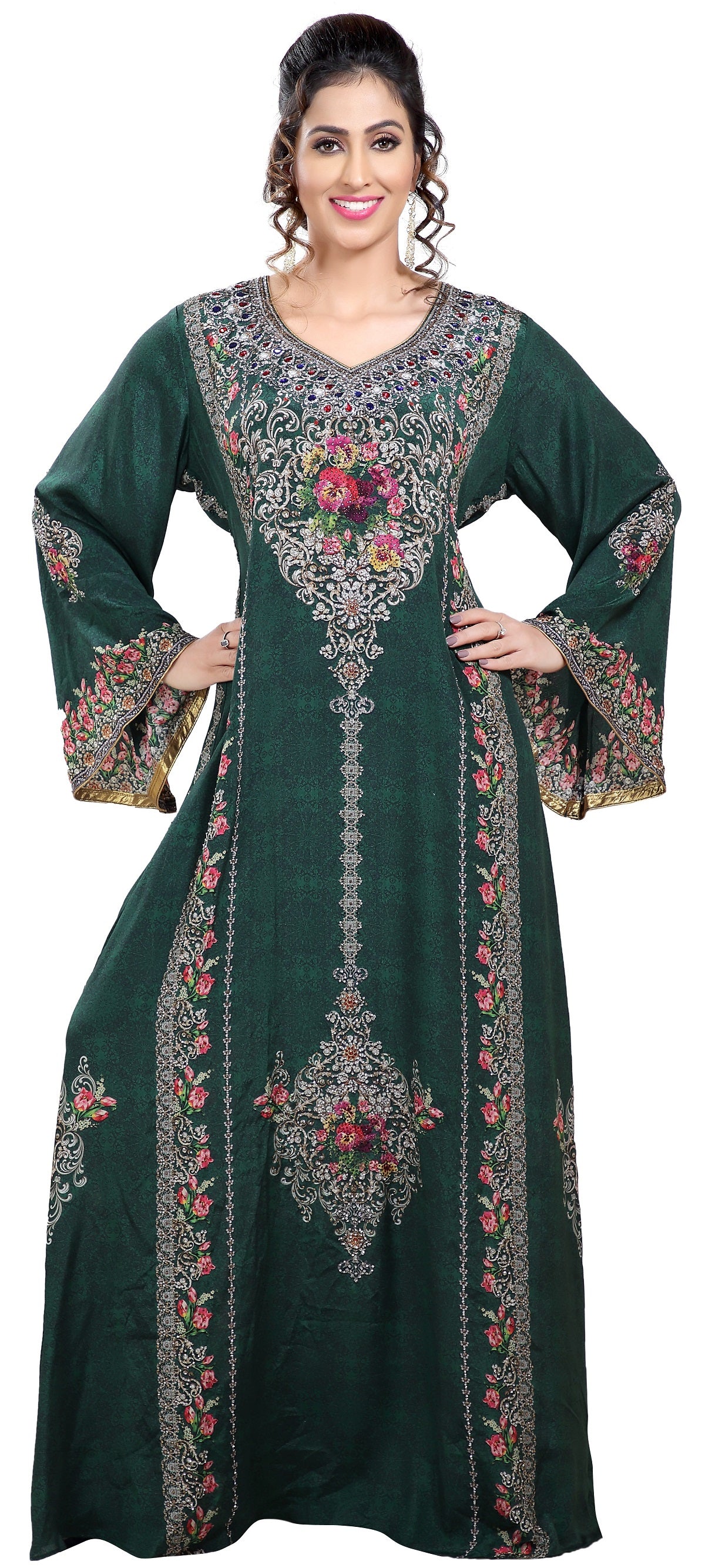Floral Printed Fabric Kaftan with Embroidered Belt - Maxim Creation