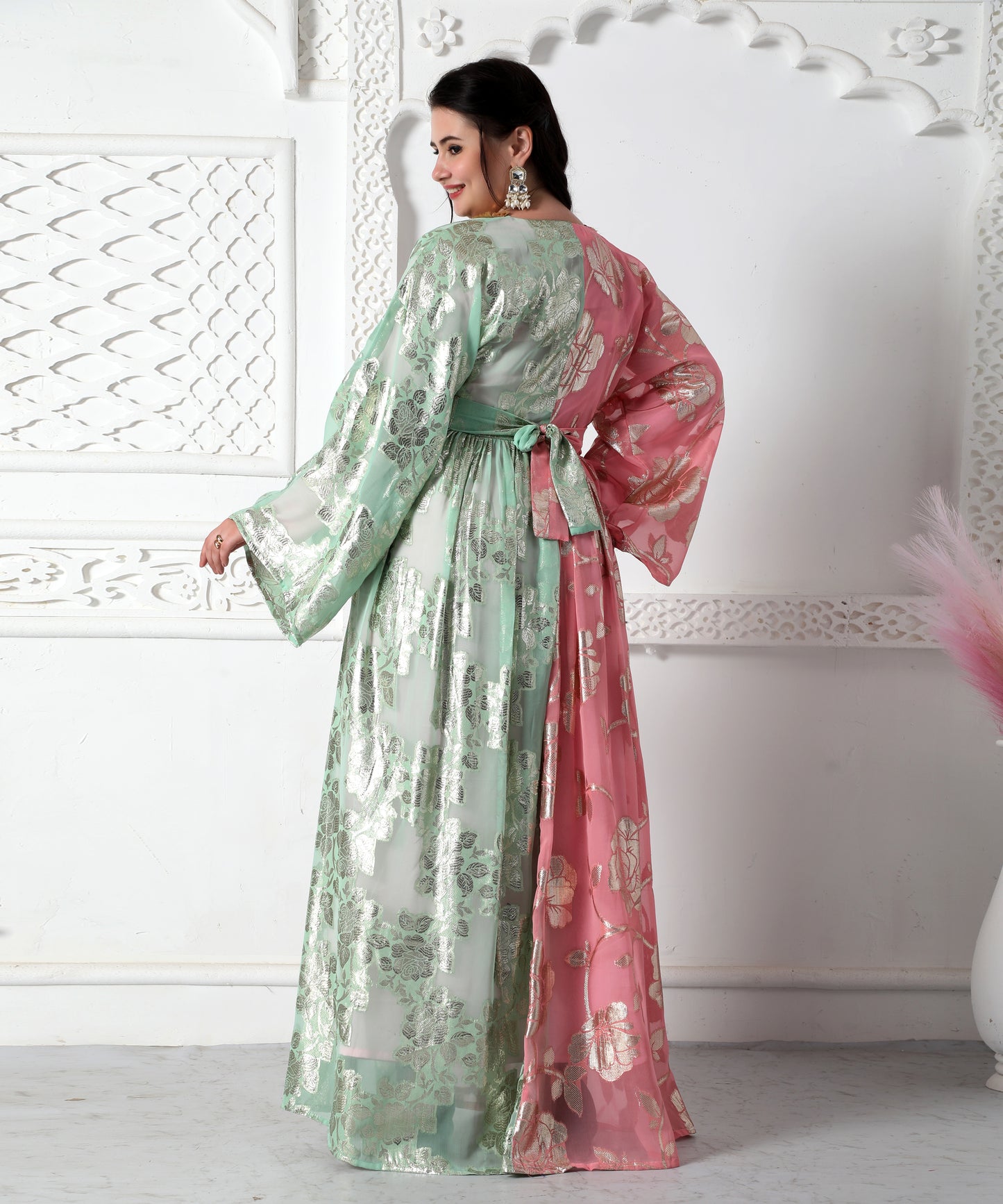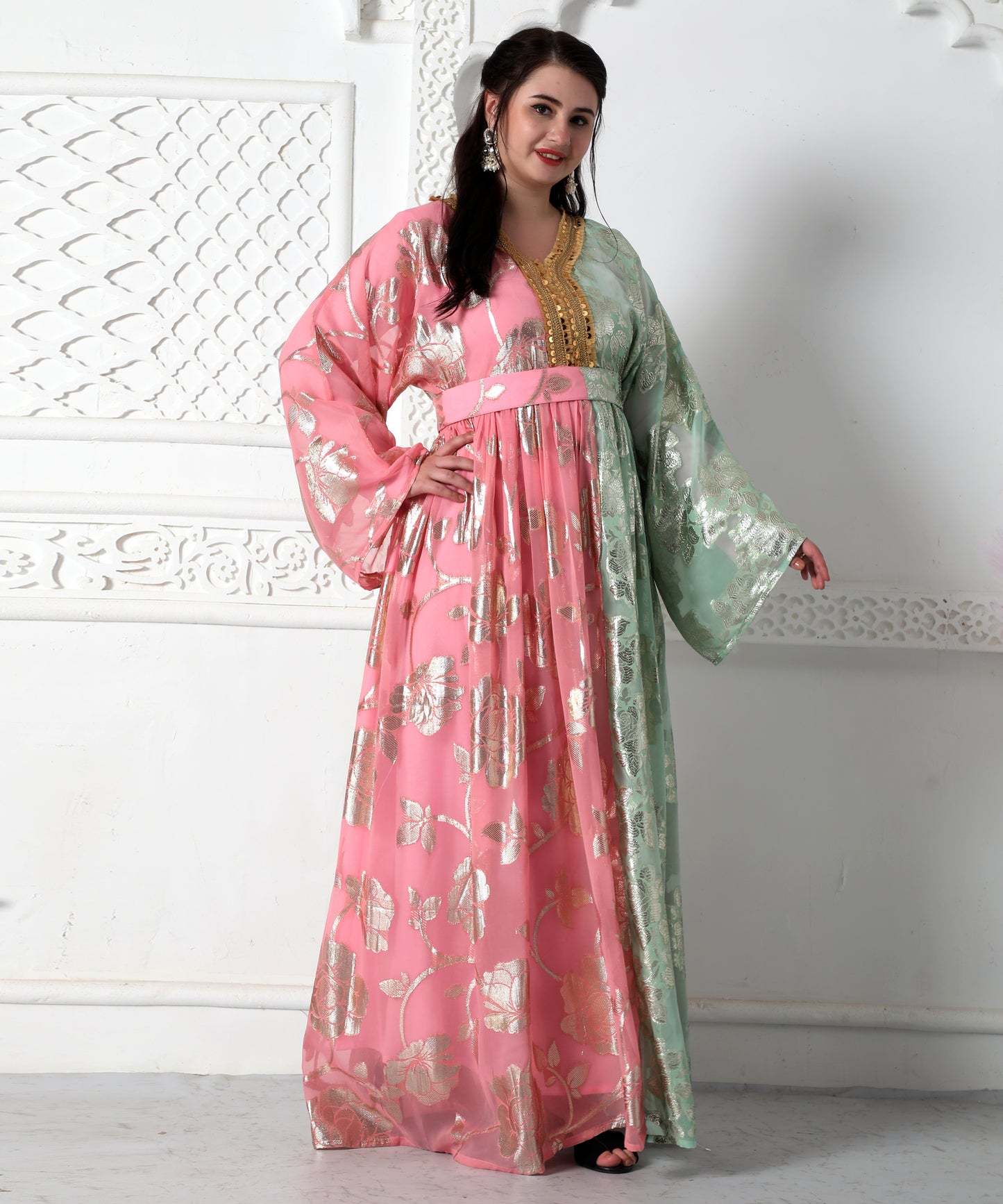 Designer-Wear Dual Tone Jalabiya Kaftan In Brasso |