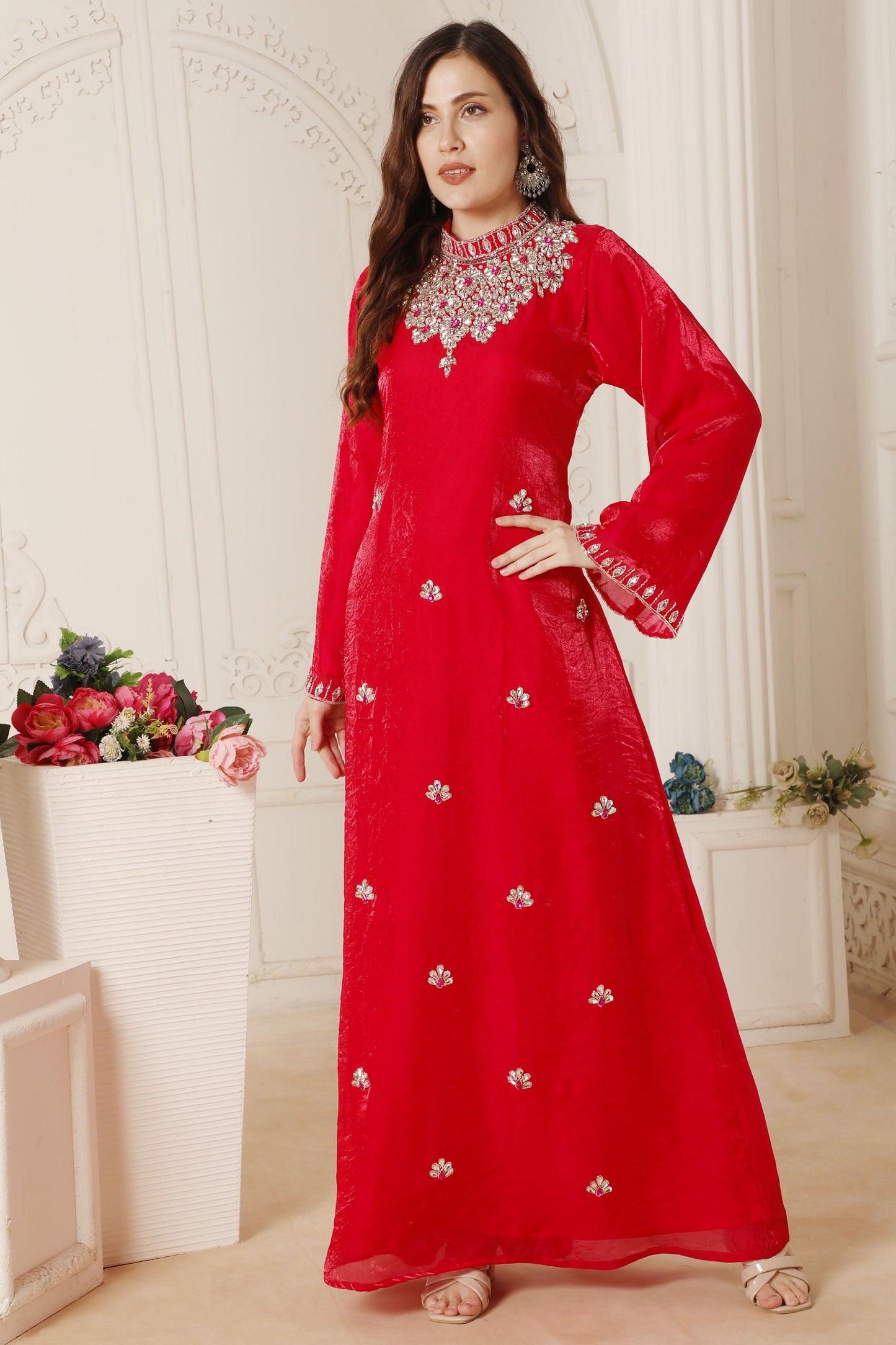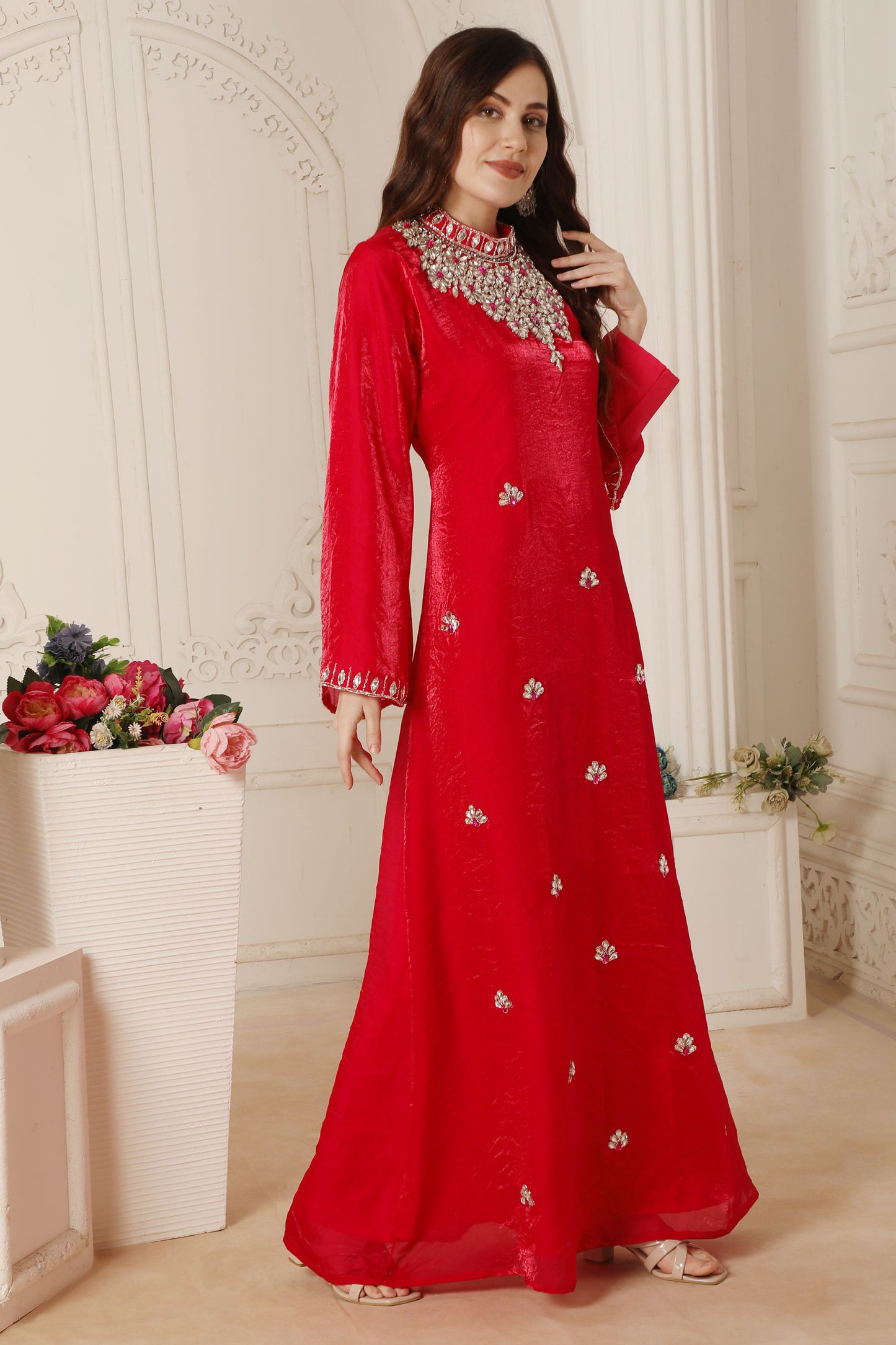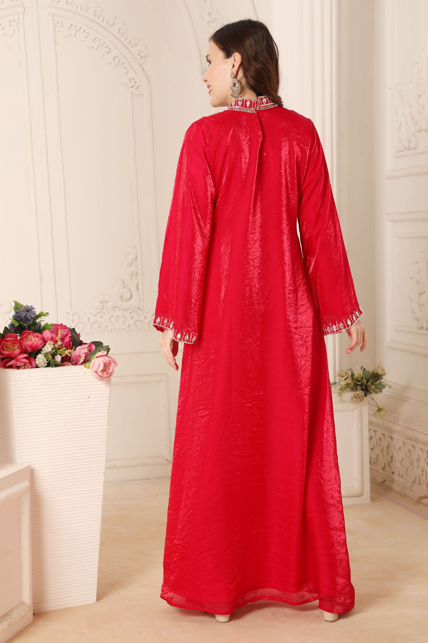 High Neck Rani Pink Hand-Embroidered Designer Jalabiya