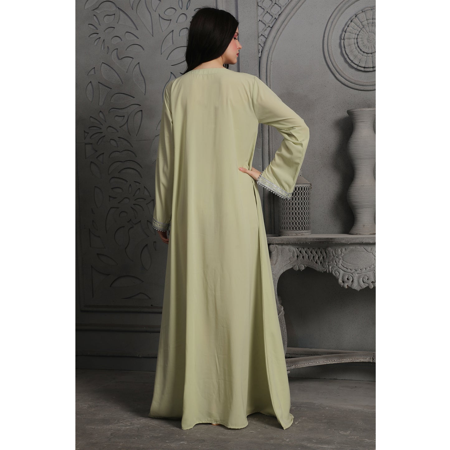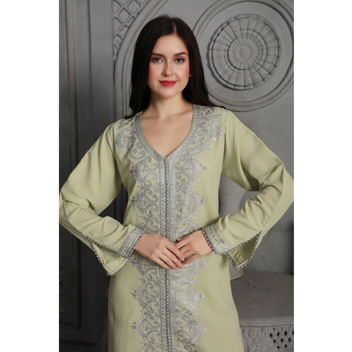 Intricate Silver Embroidery Dubai Kaftan Arabic Dress
