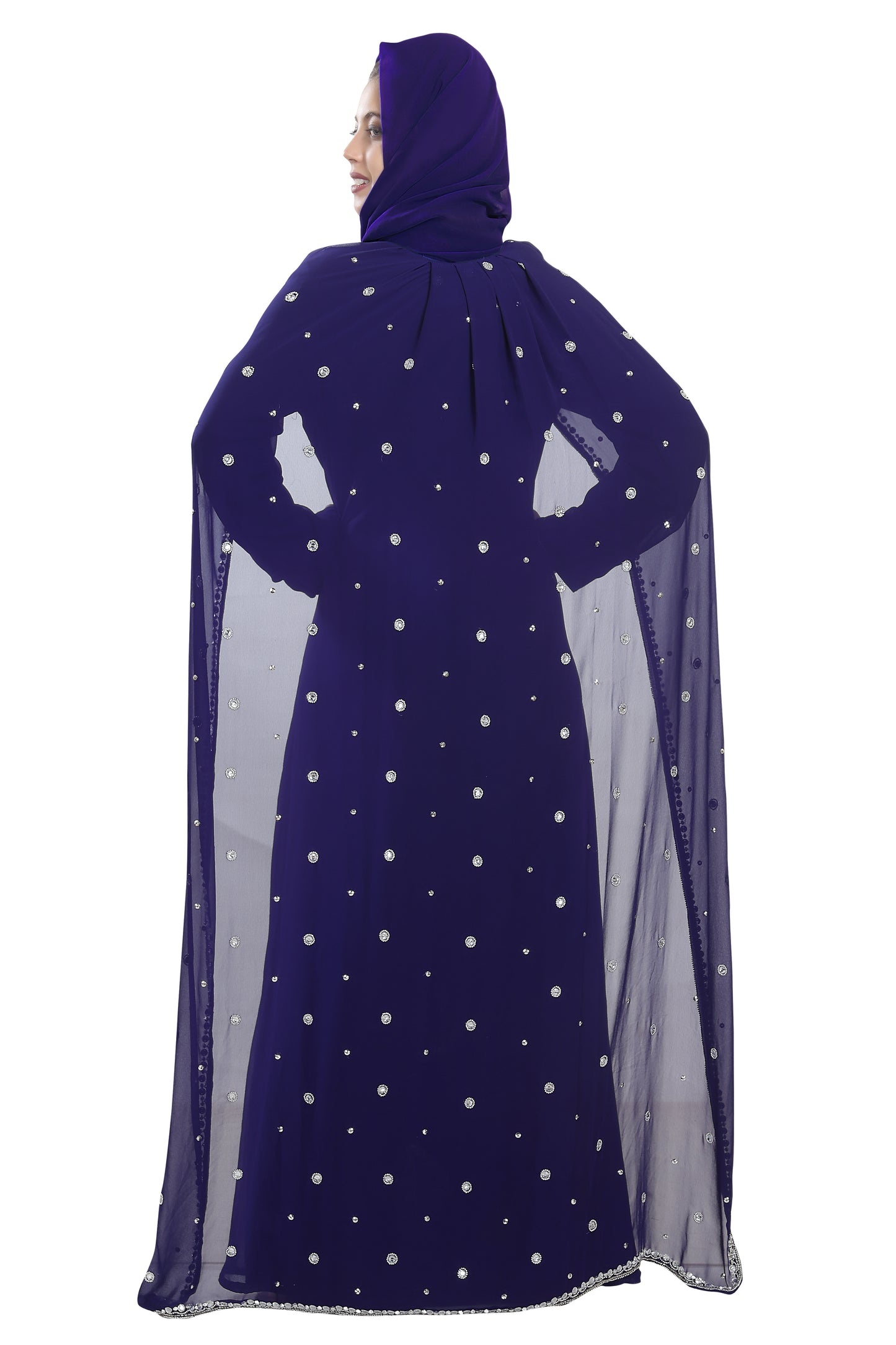 This attention-grabbing elegant kaftan is just right for any event, with the royal blue and silver colour sequins and beads. This hand embroidery attire remains on top in the well-groomed kaftan industry. This navy blue georgette kaftan is a novel maxim creation craft and would be made to order. When it comes to fitness, the XS Size can fit you if you are slim. So, ladies grab your superman look 1 piece set and get a free belt to team up with this full sleeves attire. |