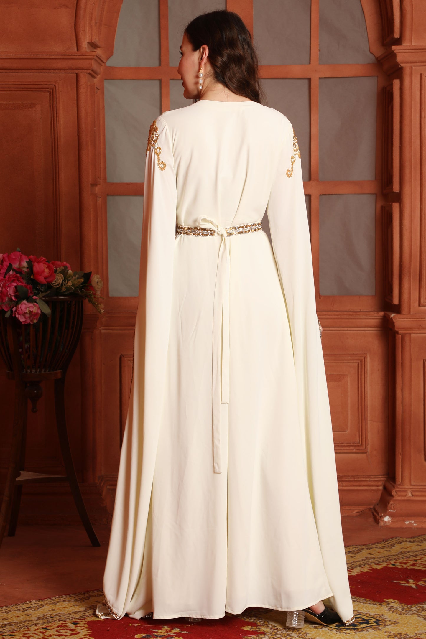 Off-White Flared Wedding Gown with Gold Sequin Embroidery |
