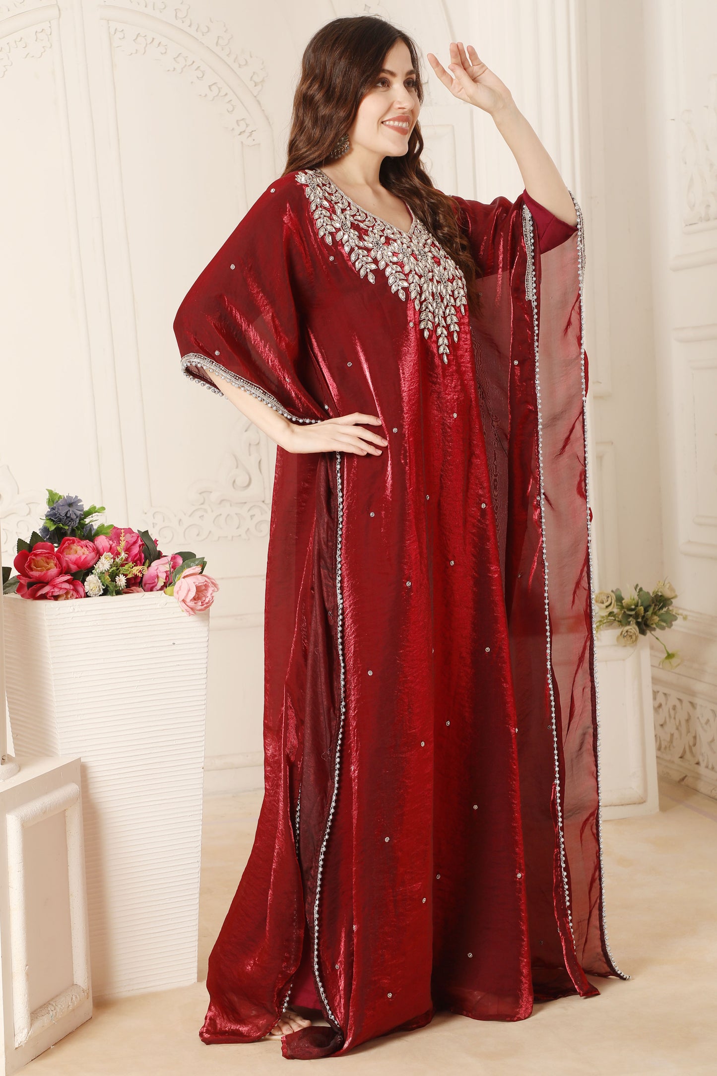 Maroon Royale Wedding Embellished Evening Gown