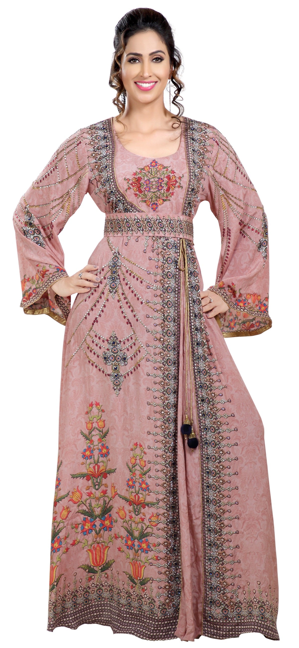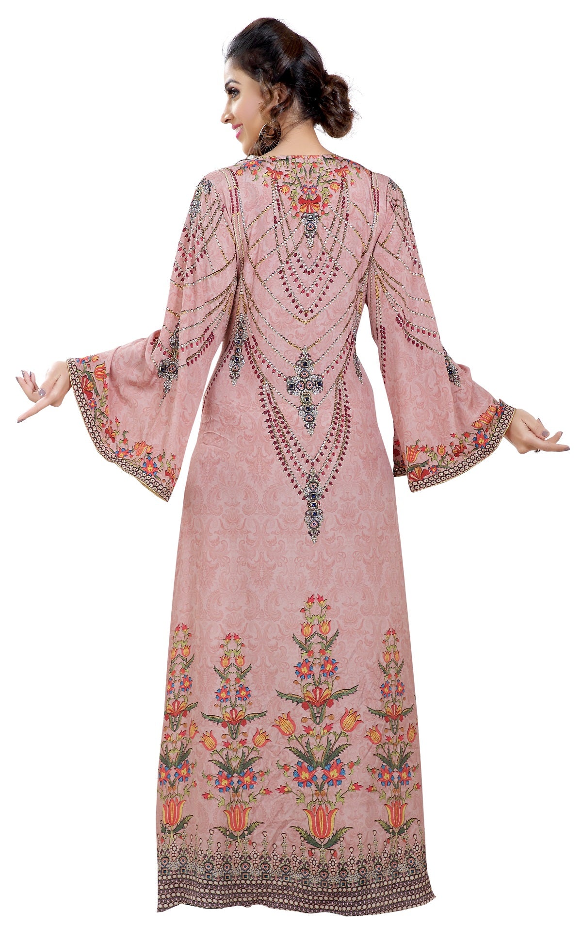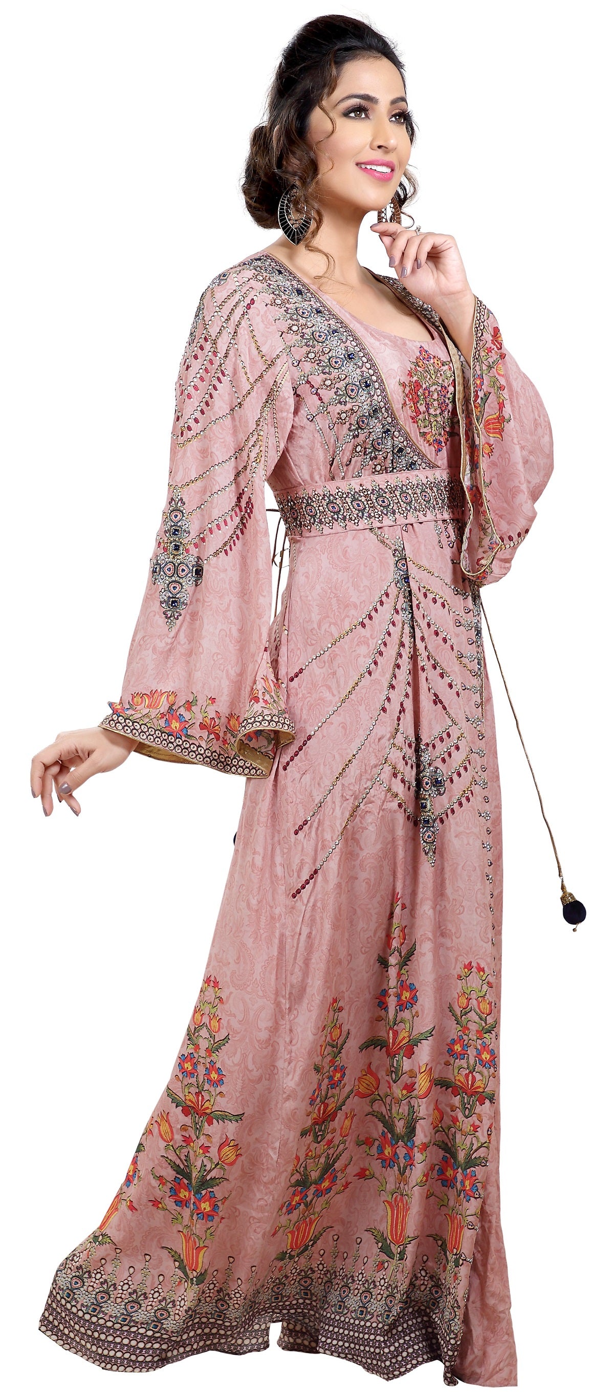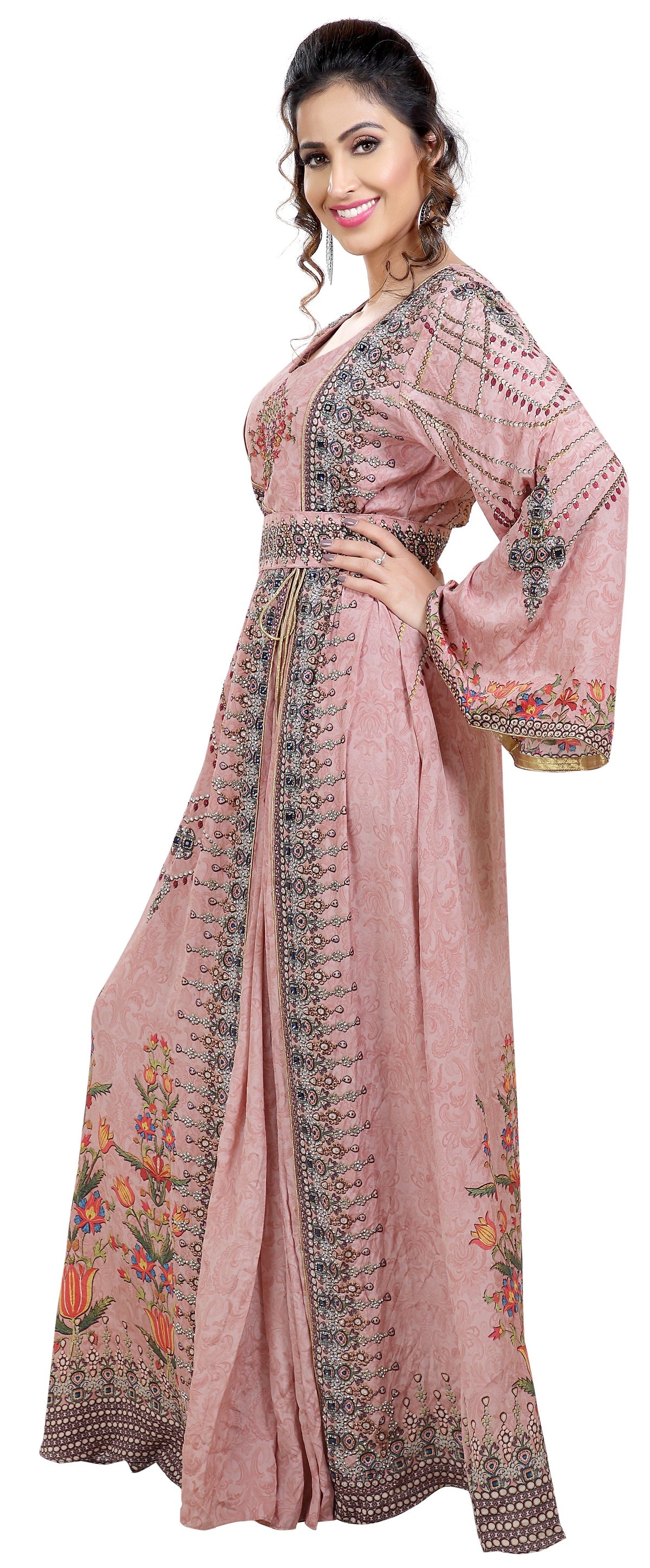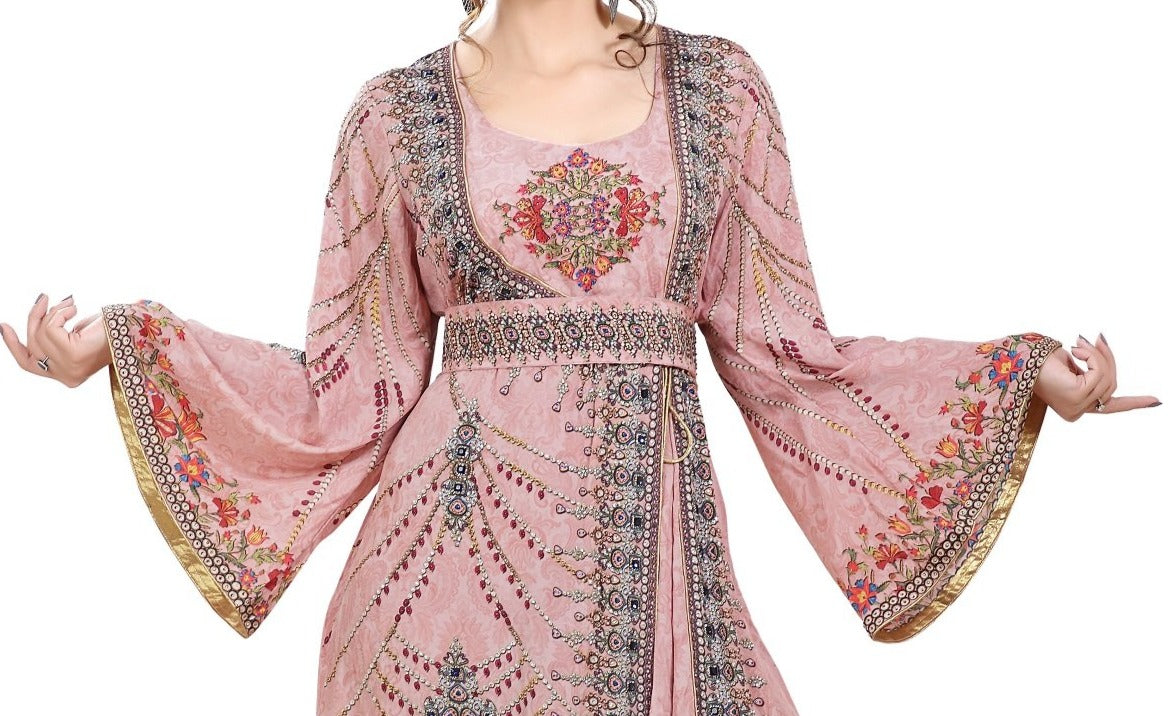 Light Pink Printed kaftan With Crystal Luxe Beads |