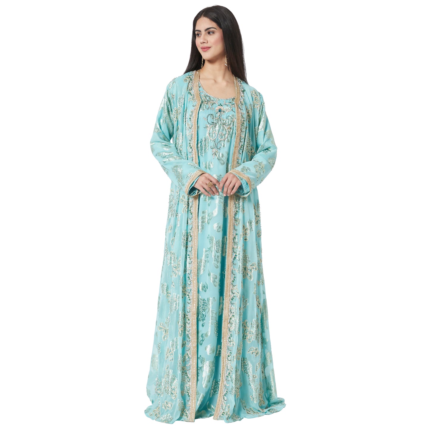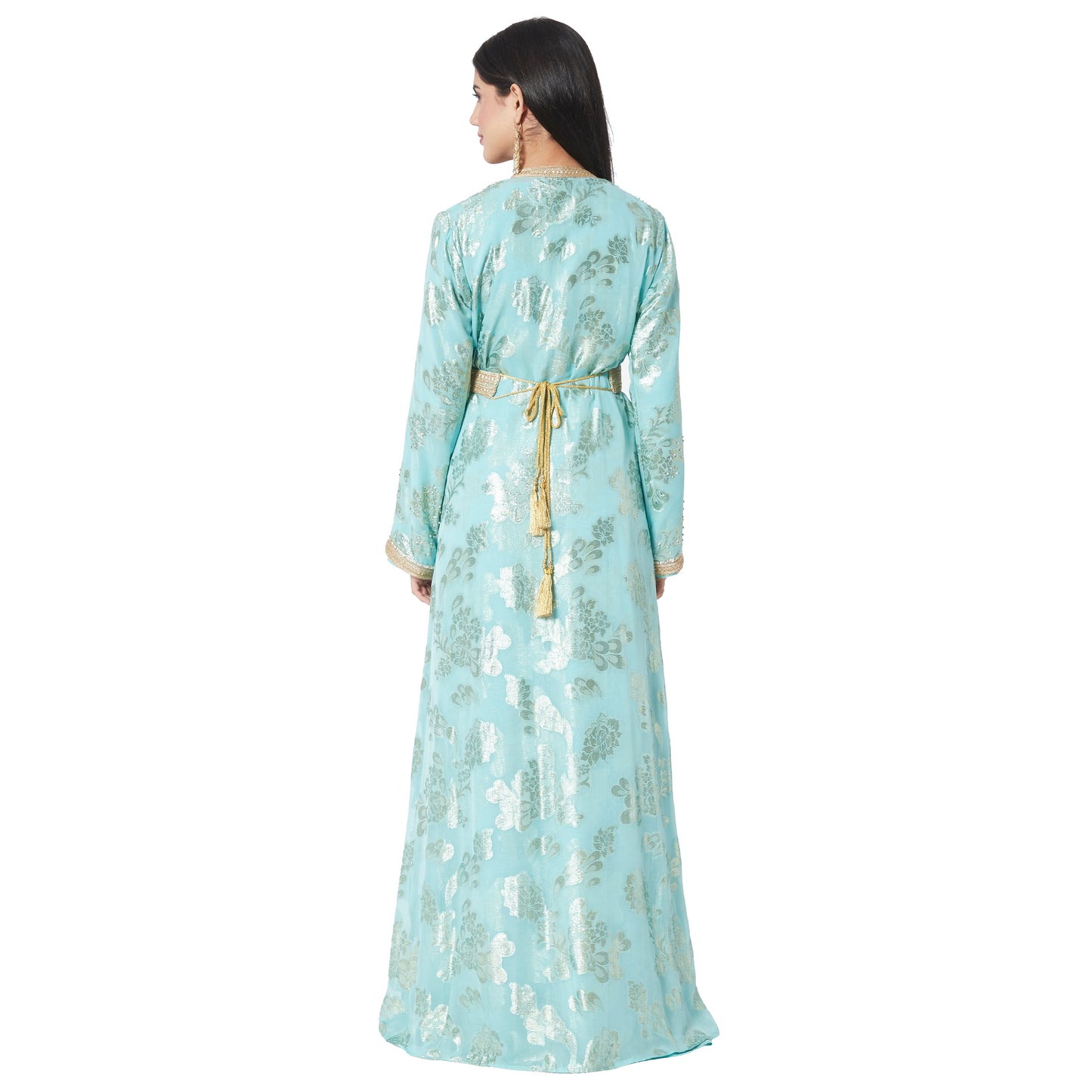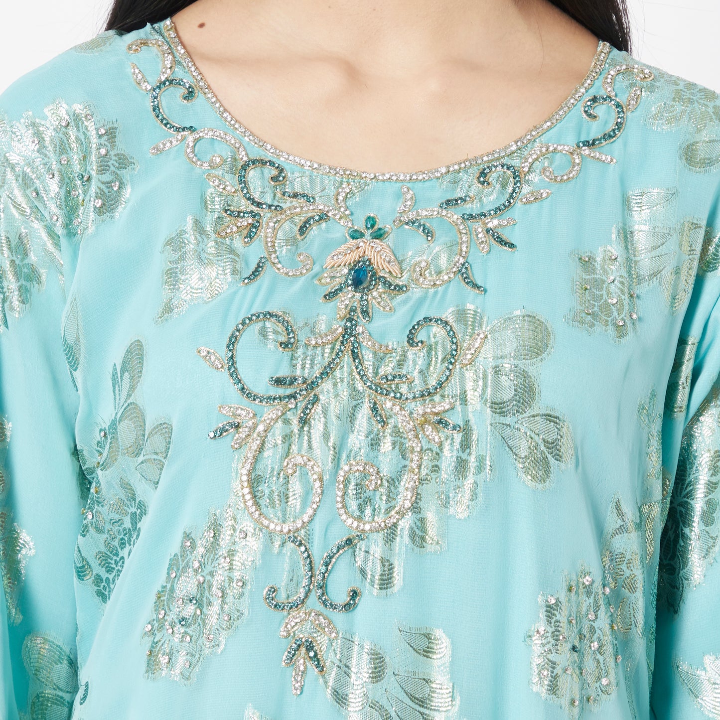 Moroccan Caftan Crystal Hand Work on Embossed Brasso Fabric