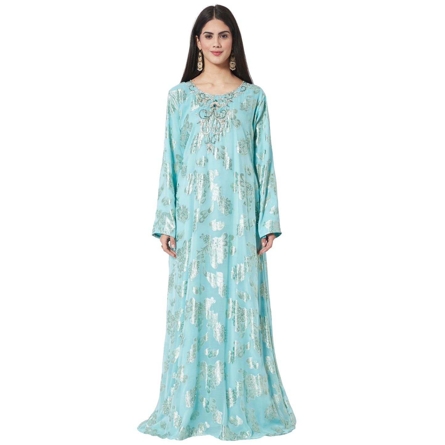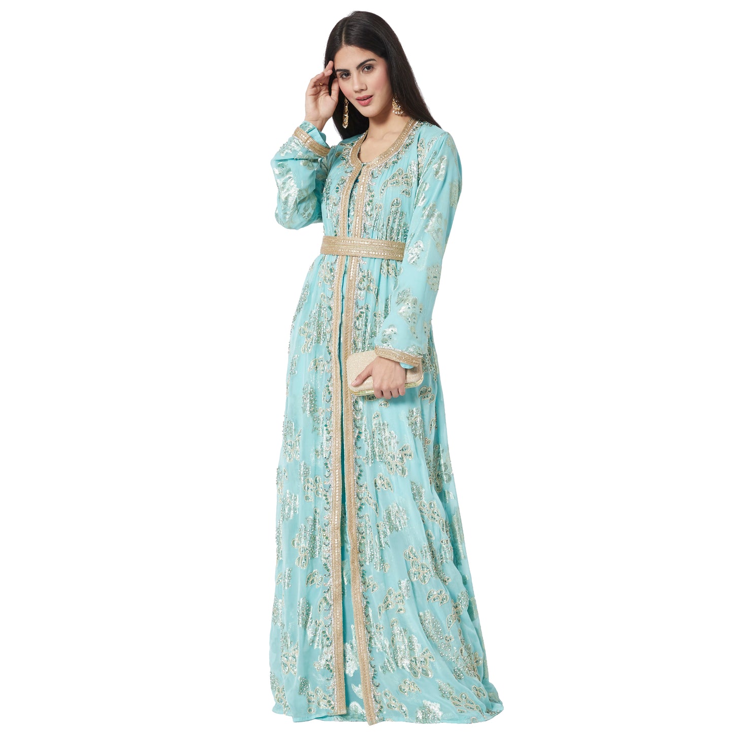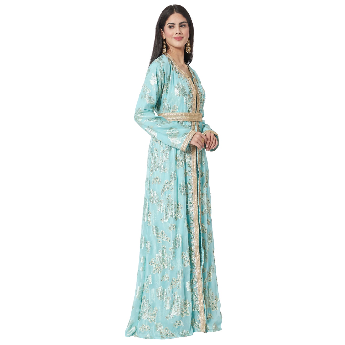 Moroccan Caftan Crystal Hand Work on Embossed Brasso Fabric - Maxim Creation
