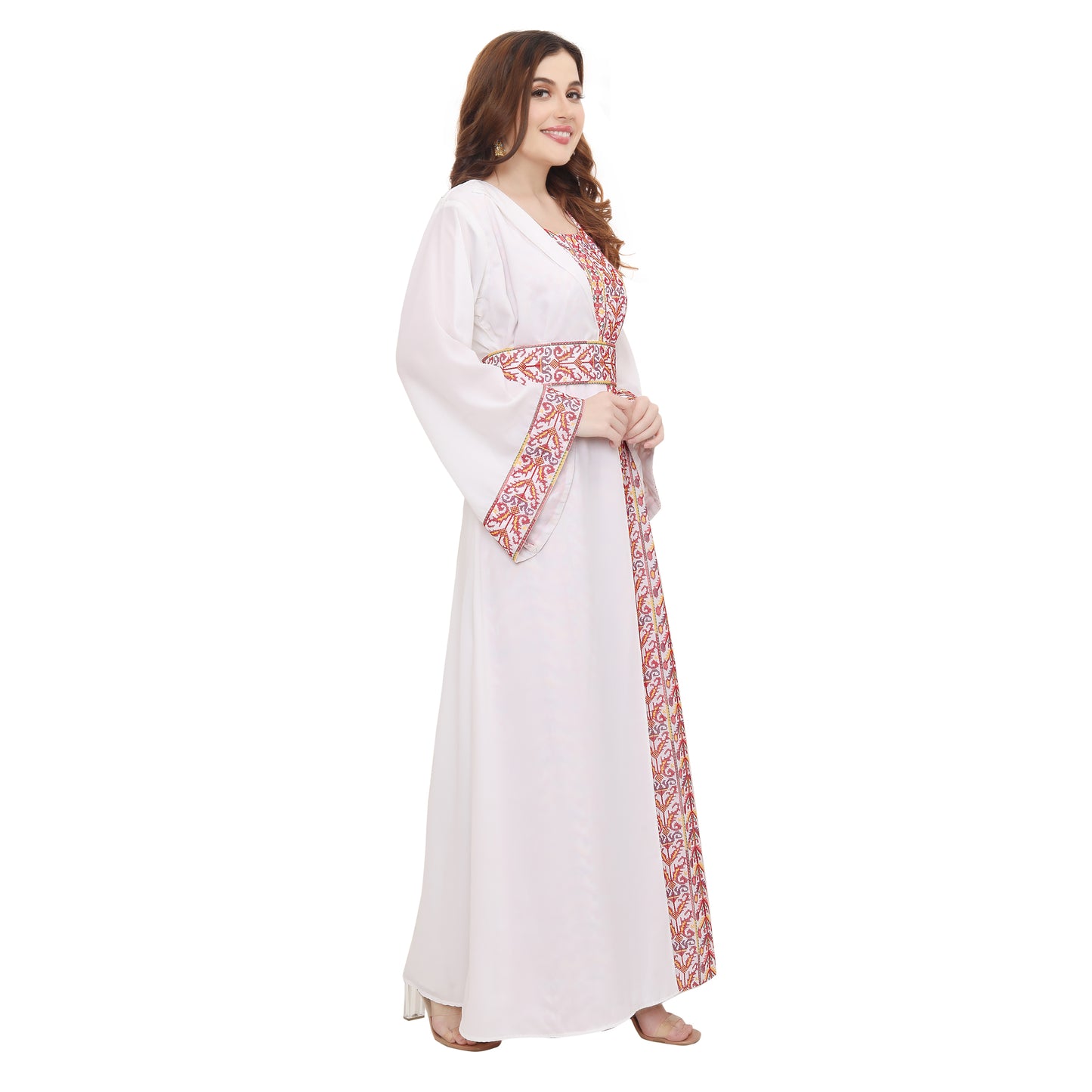 Palestine Pink Cross Stitch Threadwork Kaftan Dress |