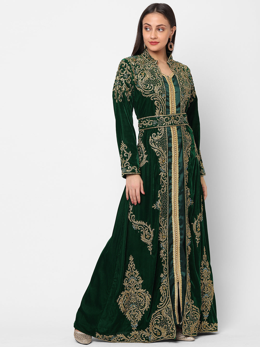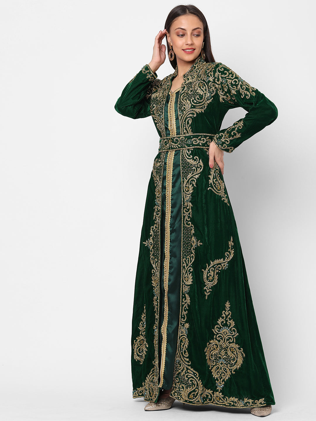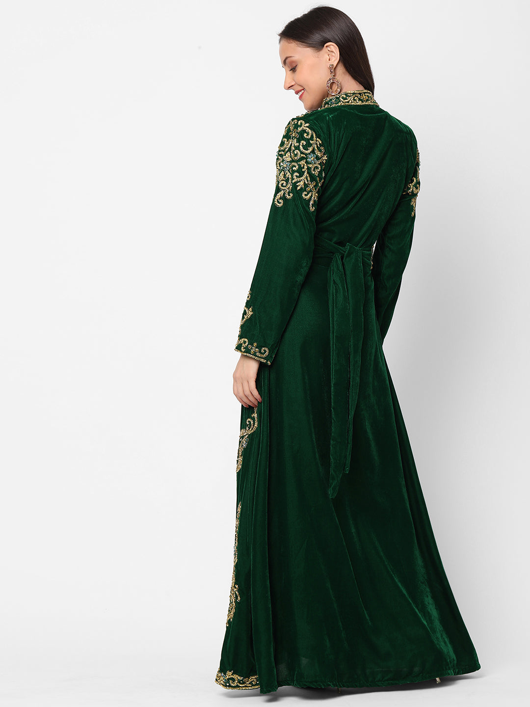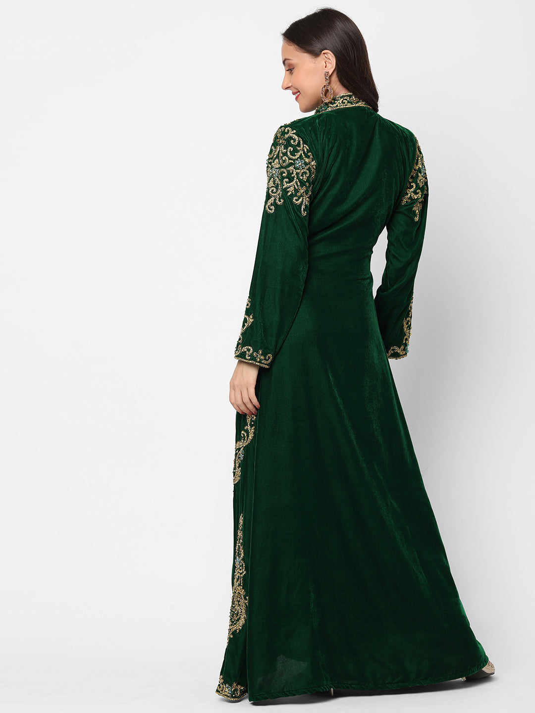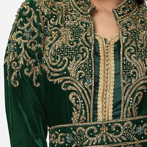 Designer Caftan Wedding Dress in Dark Green Velvet - Maxim Creation