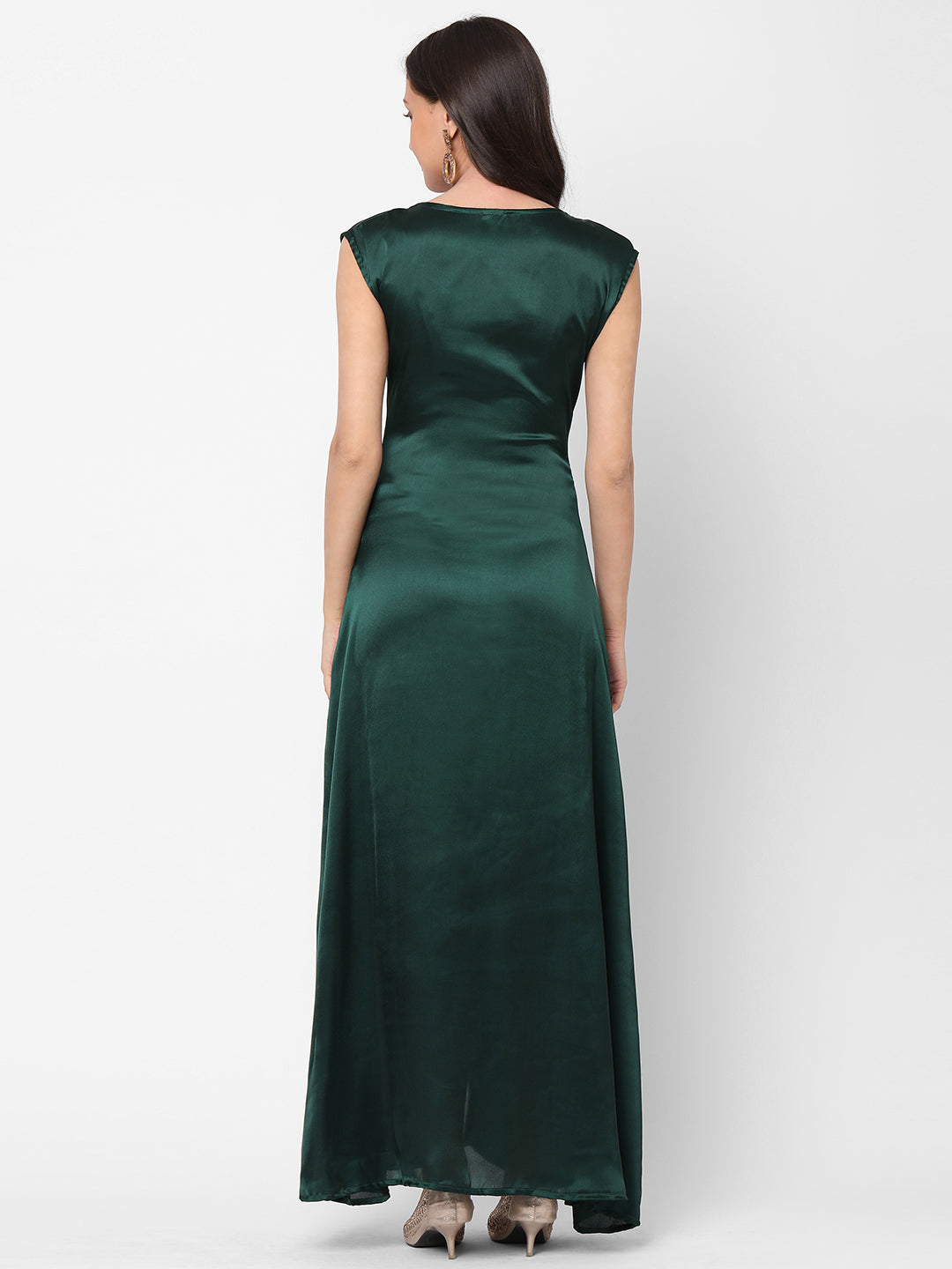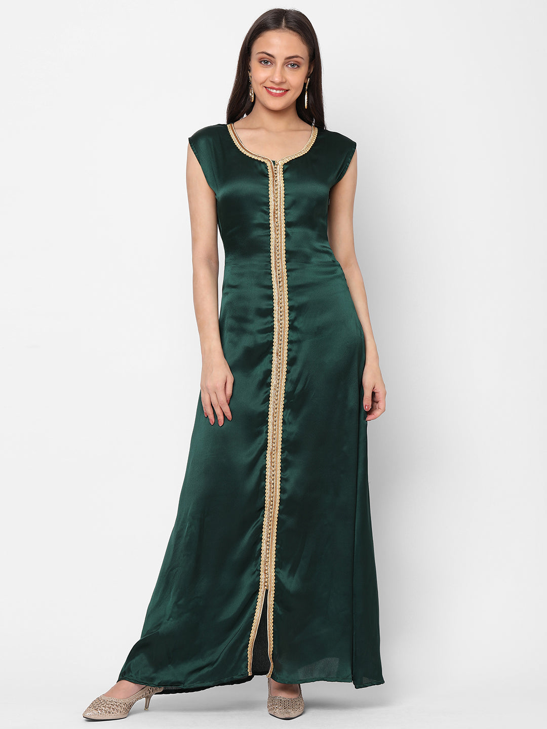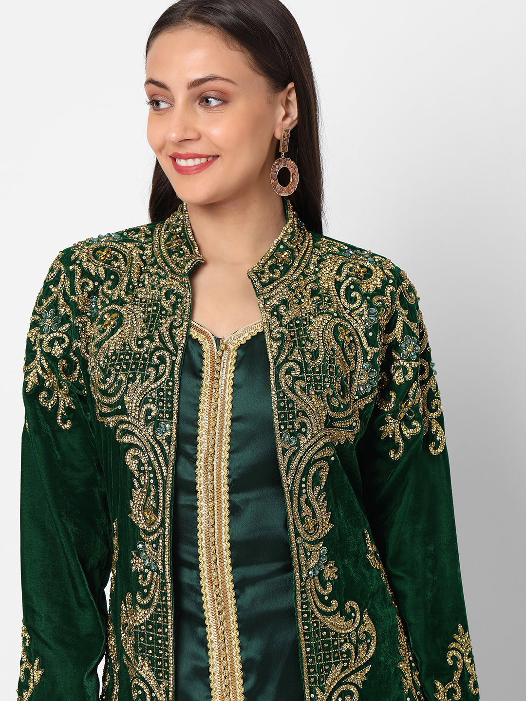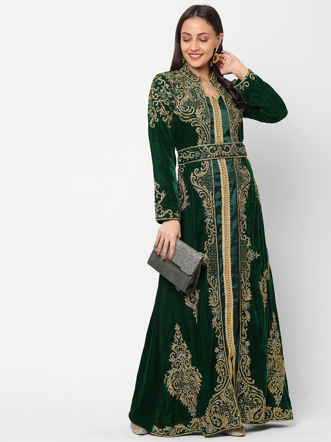 Designer Caftan Wedding Dress in Dark Green Velvet - Maxim Creation