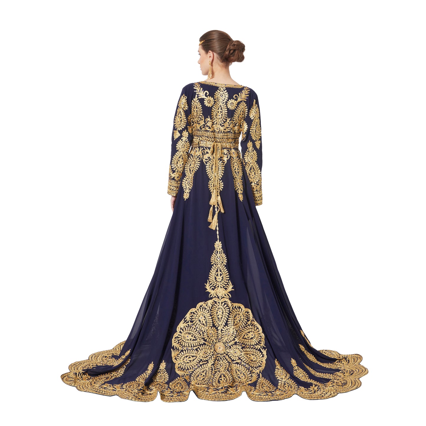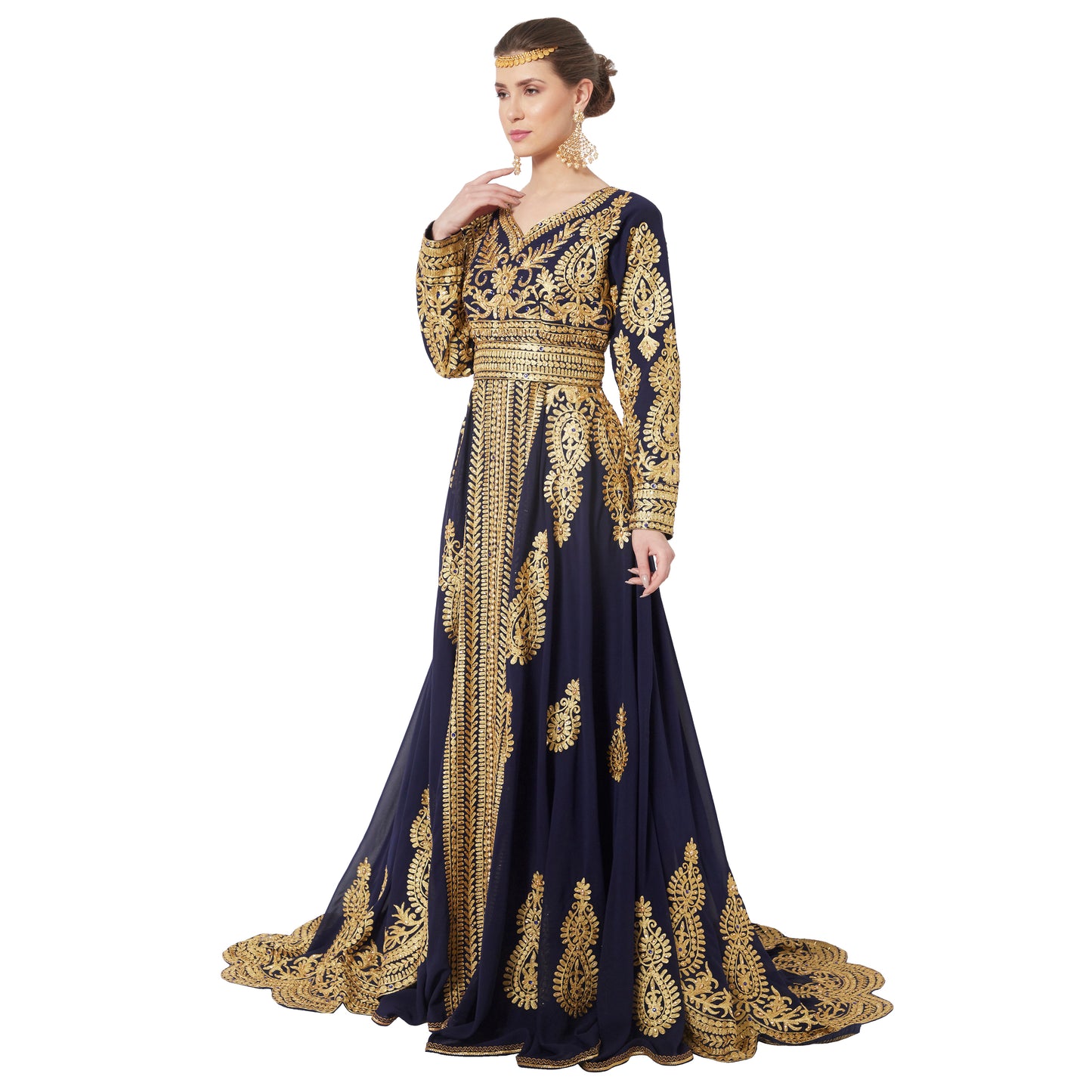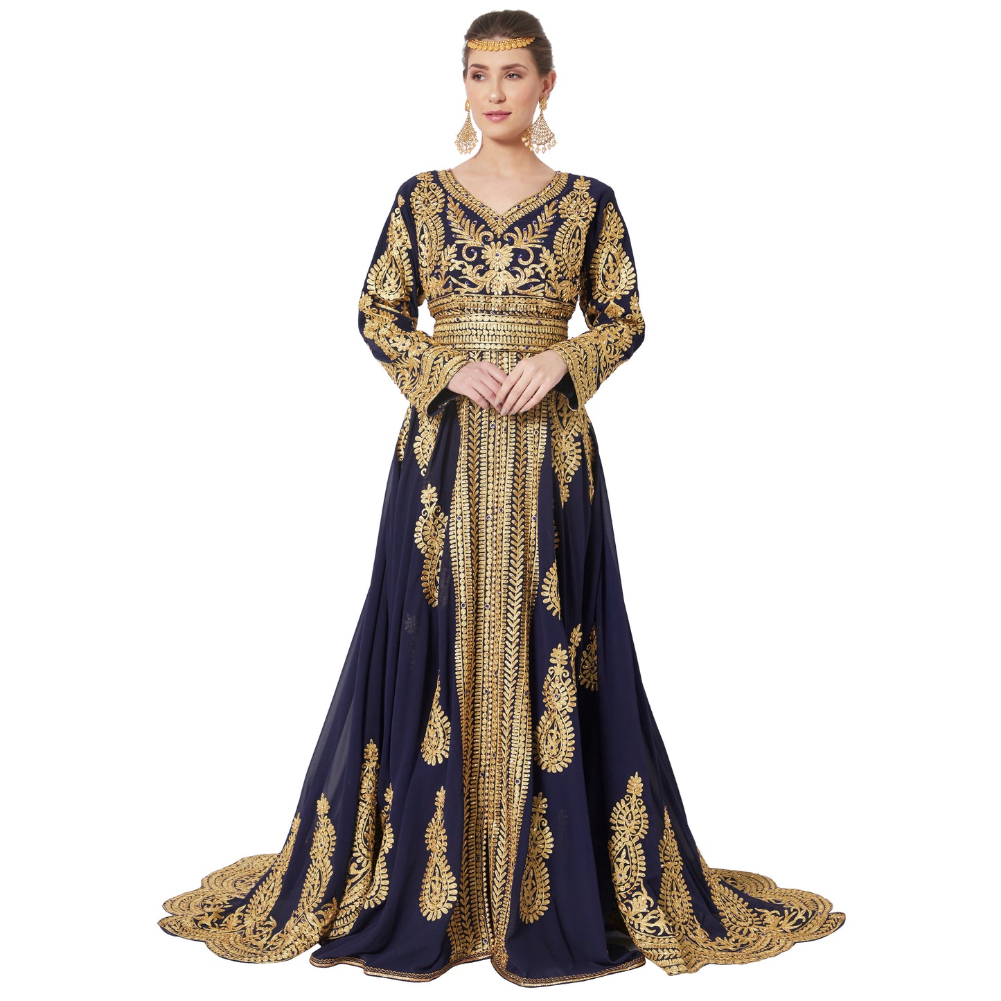 Traditional Embroidery Caftan Bridal Wedding Kaftan Gown With Tail / Train