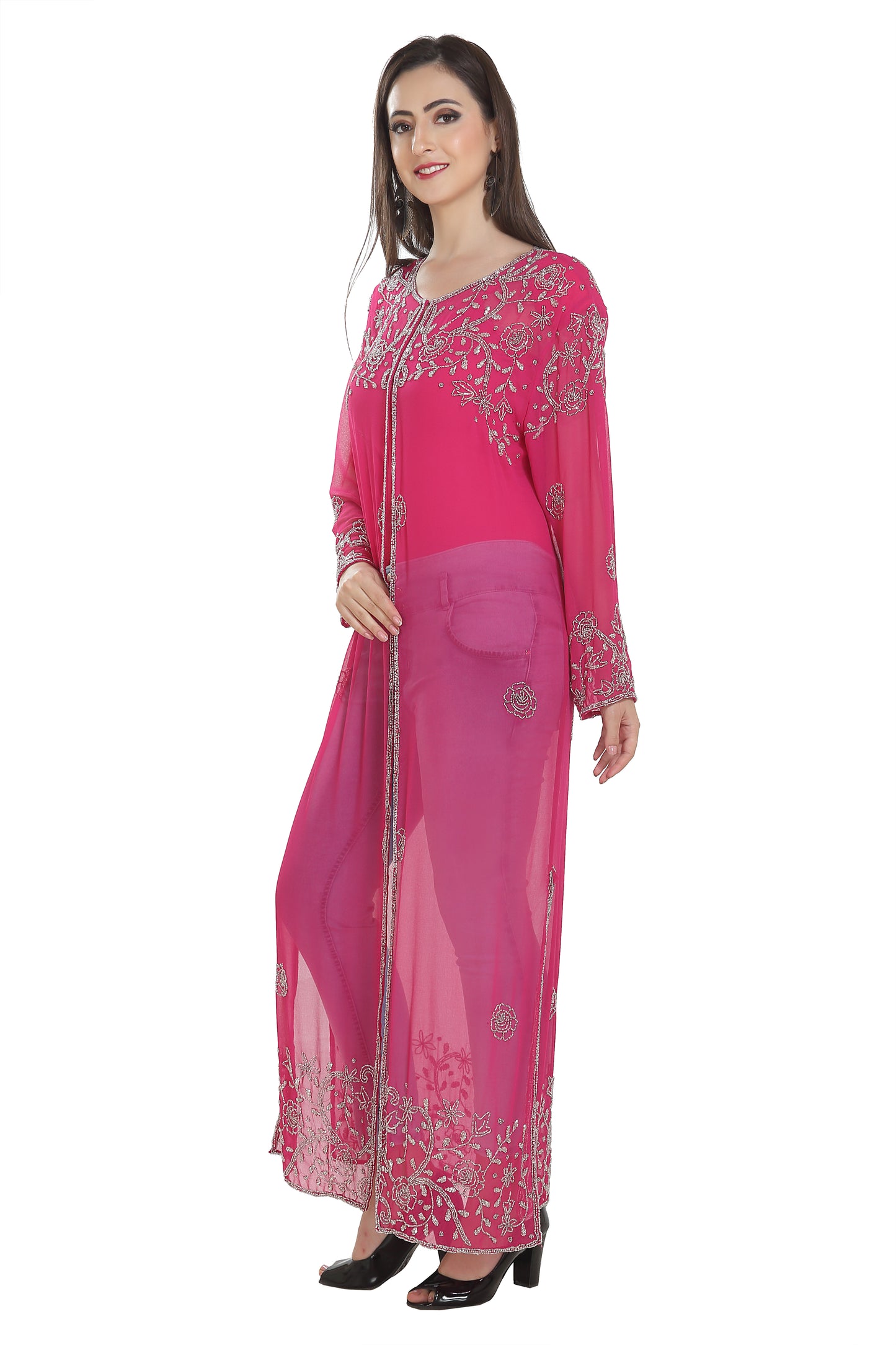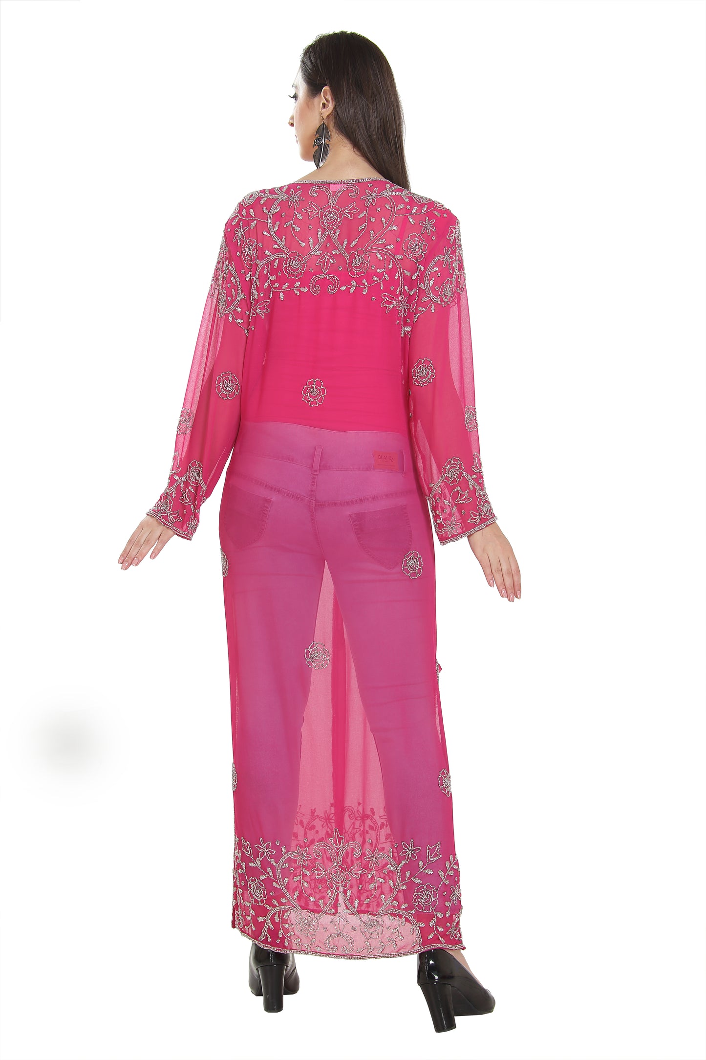 Embroidered Kurti With Crystal Overcoat Long Maxi Dress