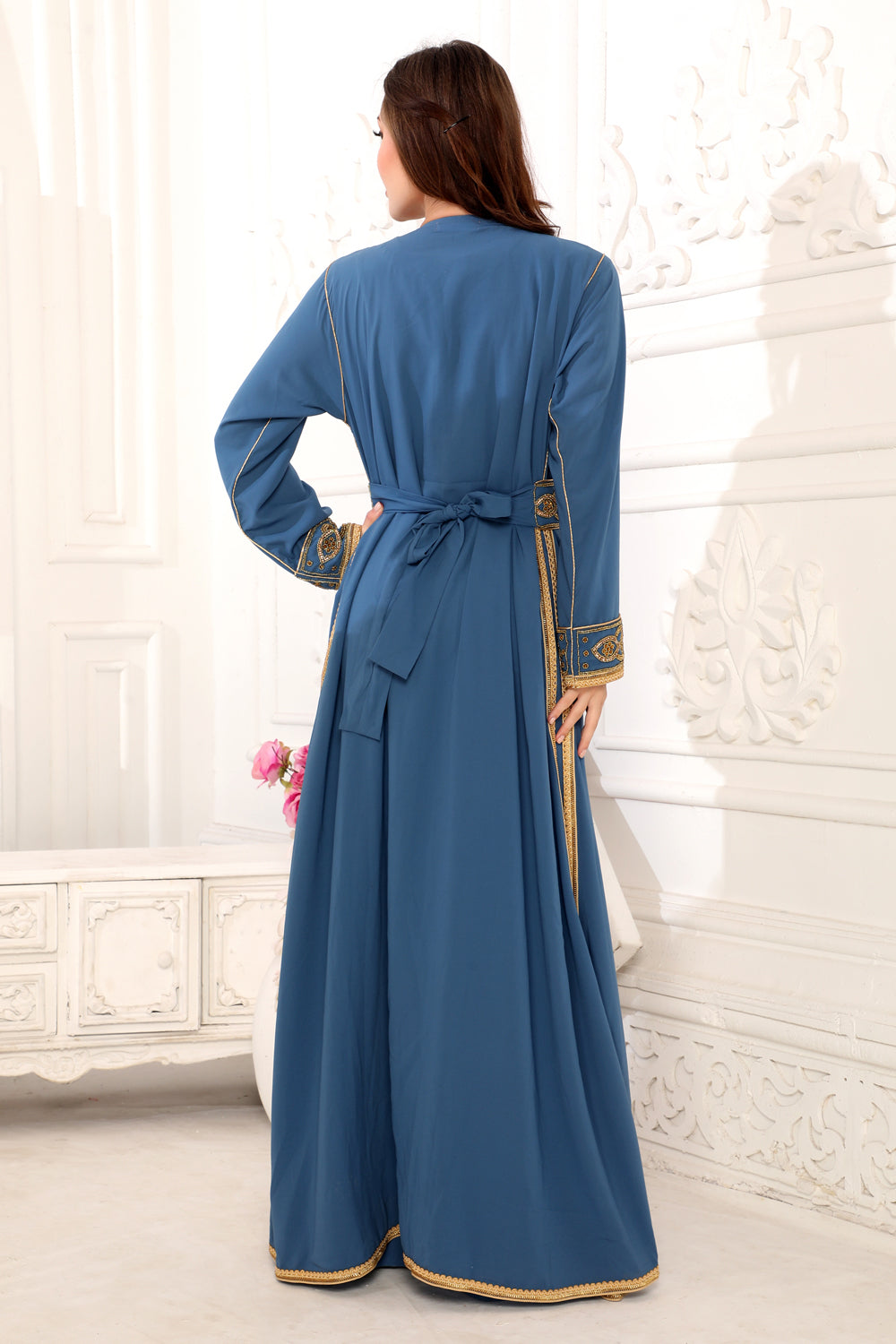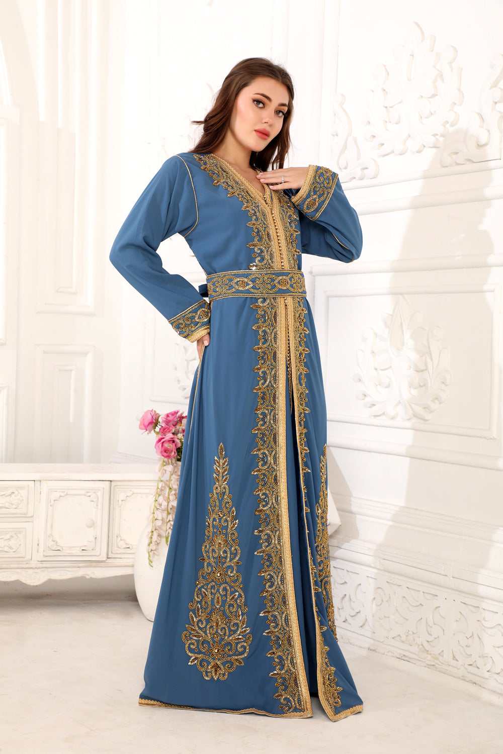 Crystal Embroidery Moroccan Caftan Takchita in a 3 Piece set with Belt |