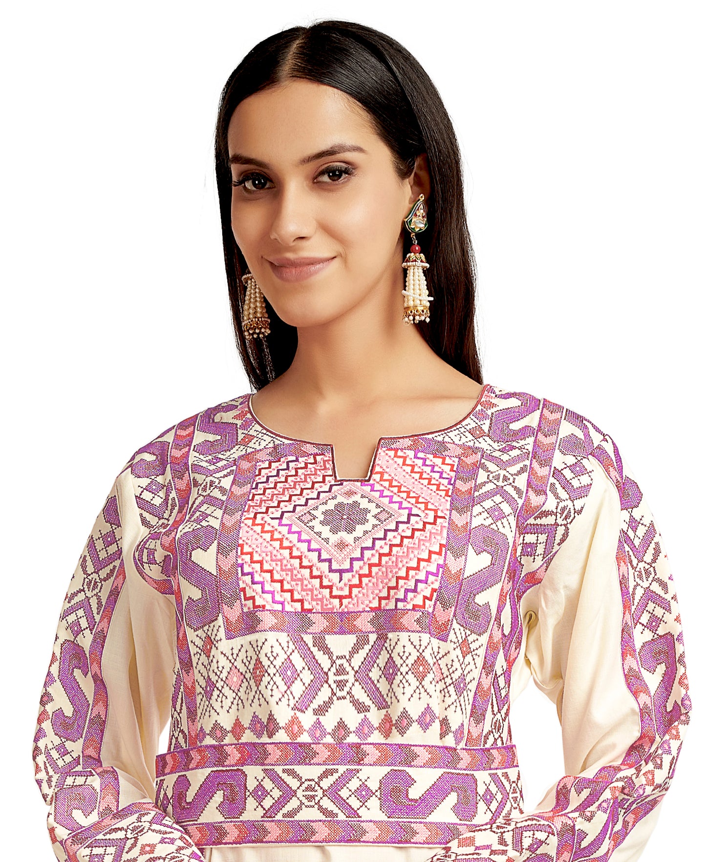 Palestine Pink Cross Stitch Threadwork Kaftan