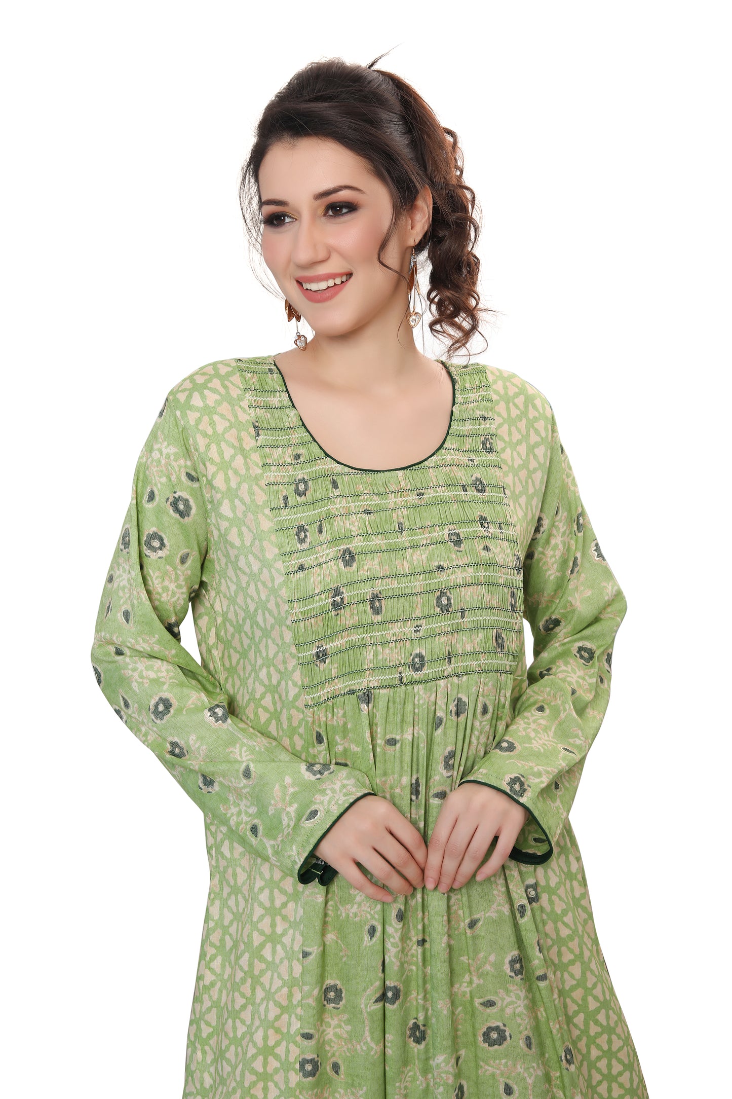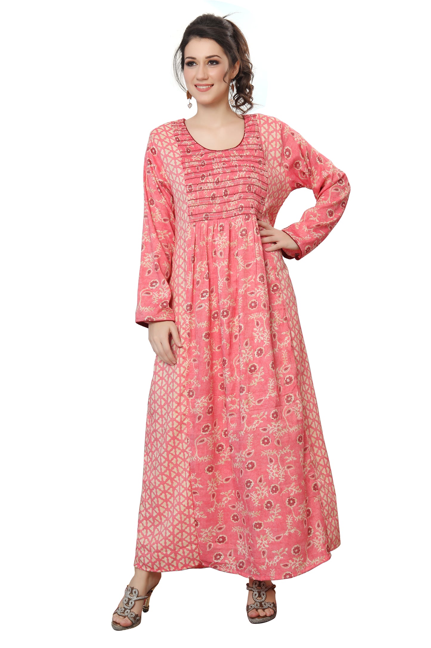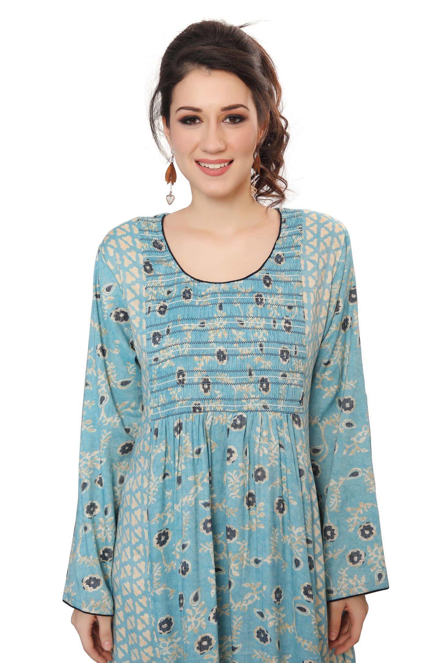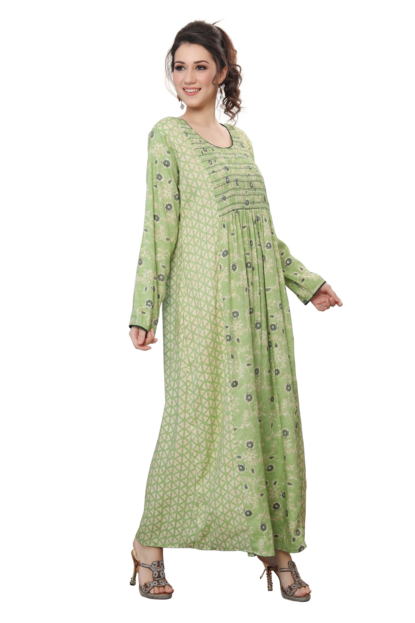 Most hand Embroidery dresses have Crystals, Beads and Sequins that are put by hand. Owing to the nature of embroidery done by hand a bead or two may fall and this is considered normal. This is due to the fact its handmade through the artisan's handicraft making process. While shipping, a bead or two may come off and we provide special material packages with all our dresses to address the same.
