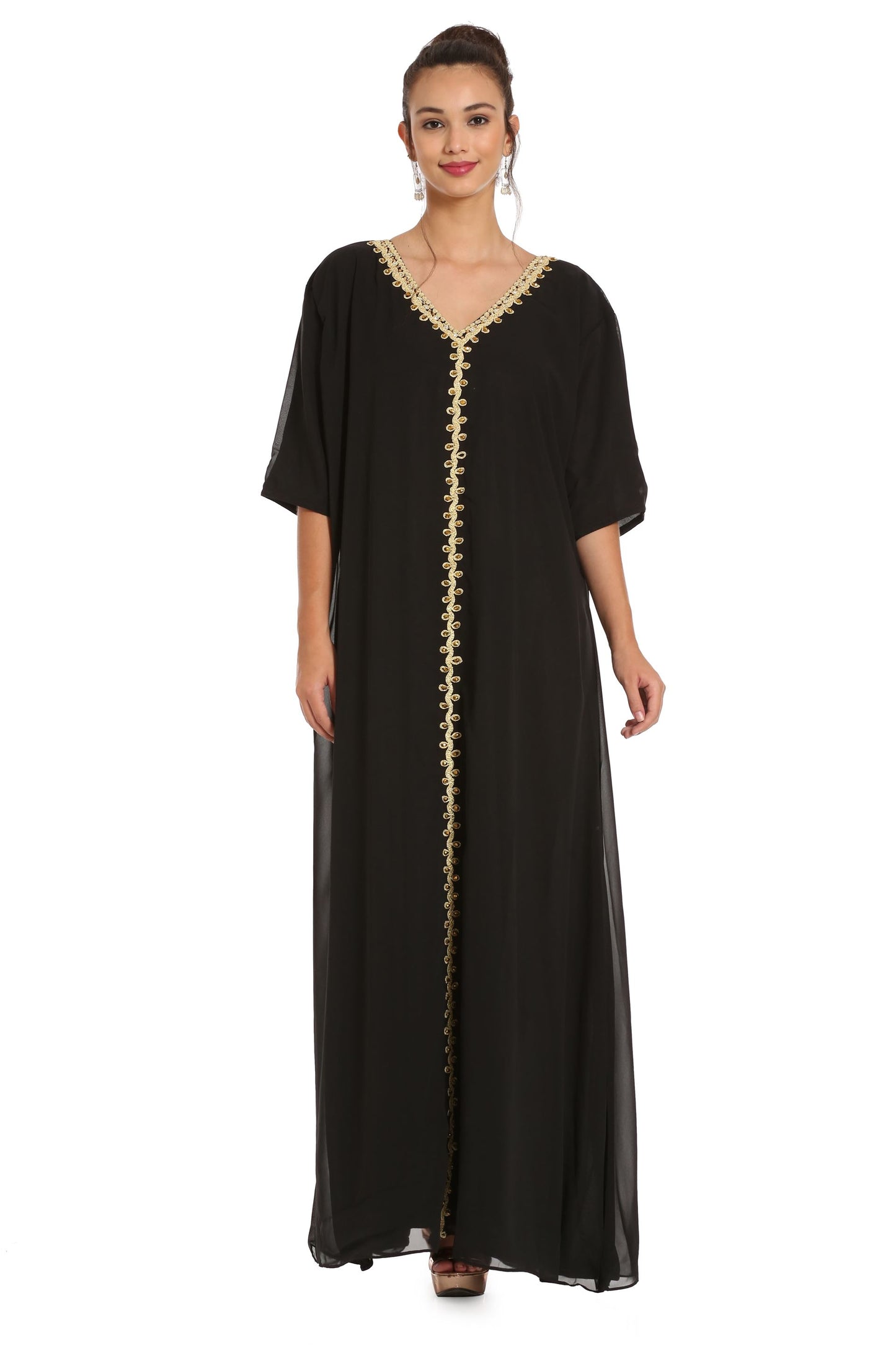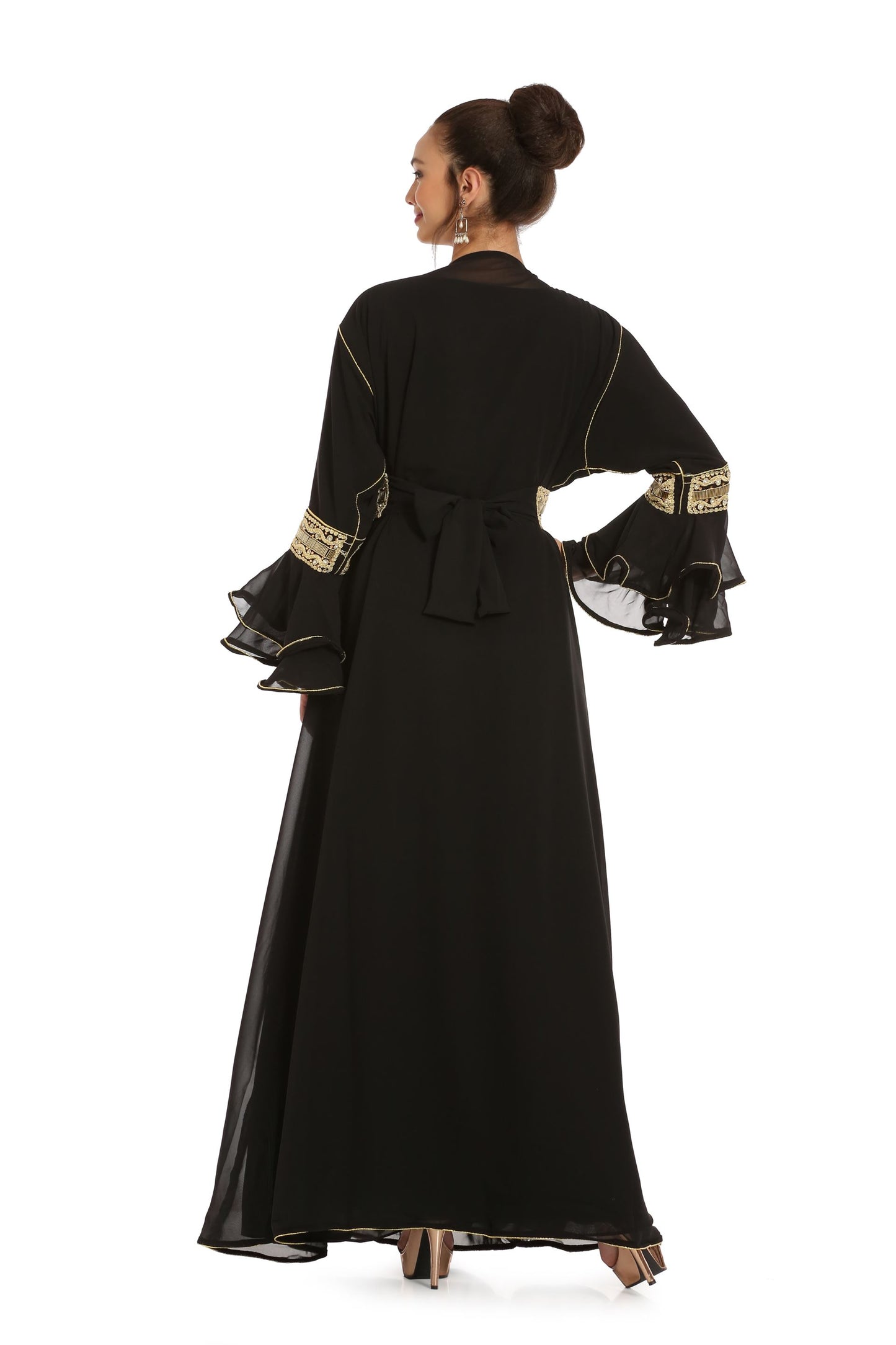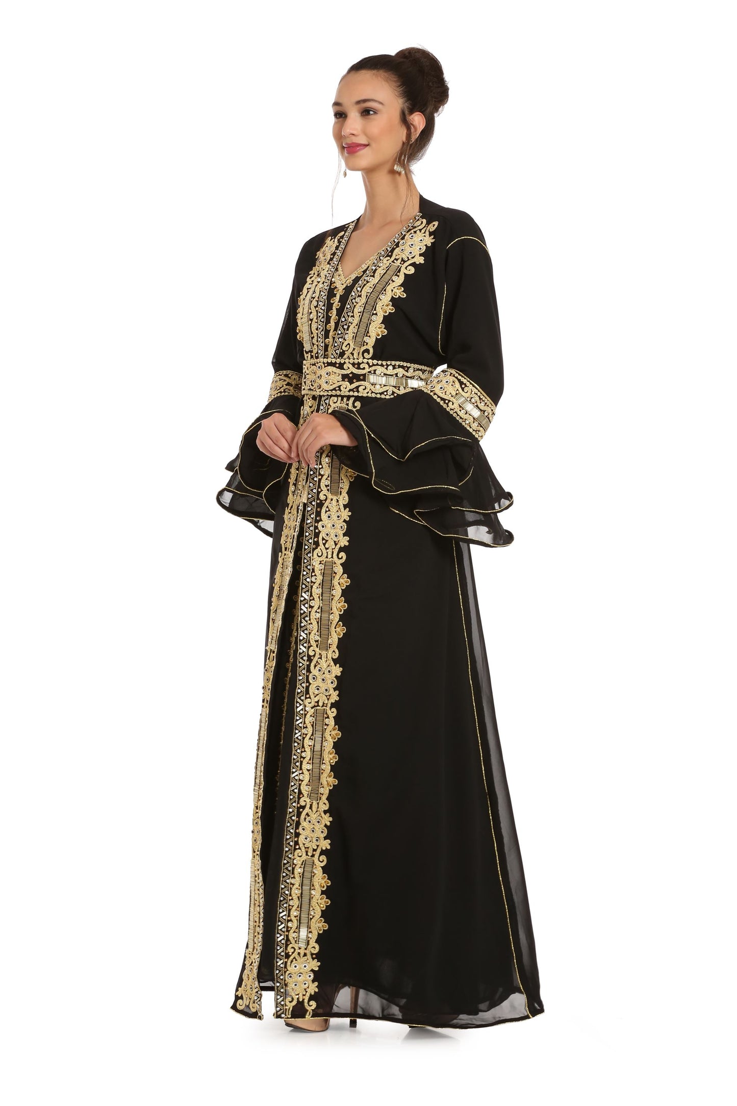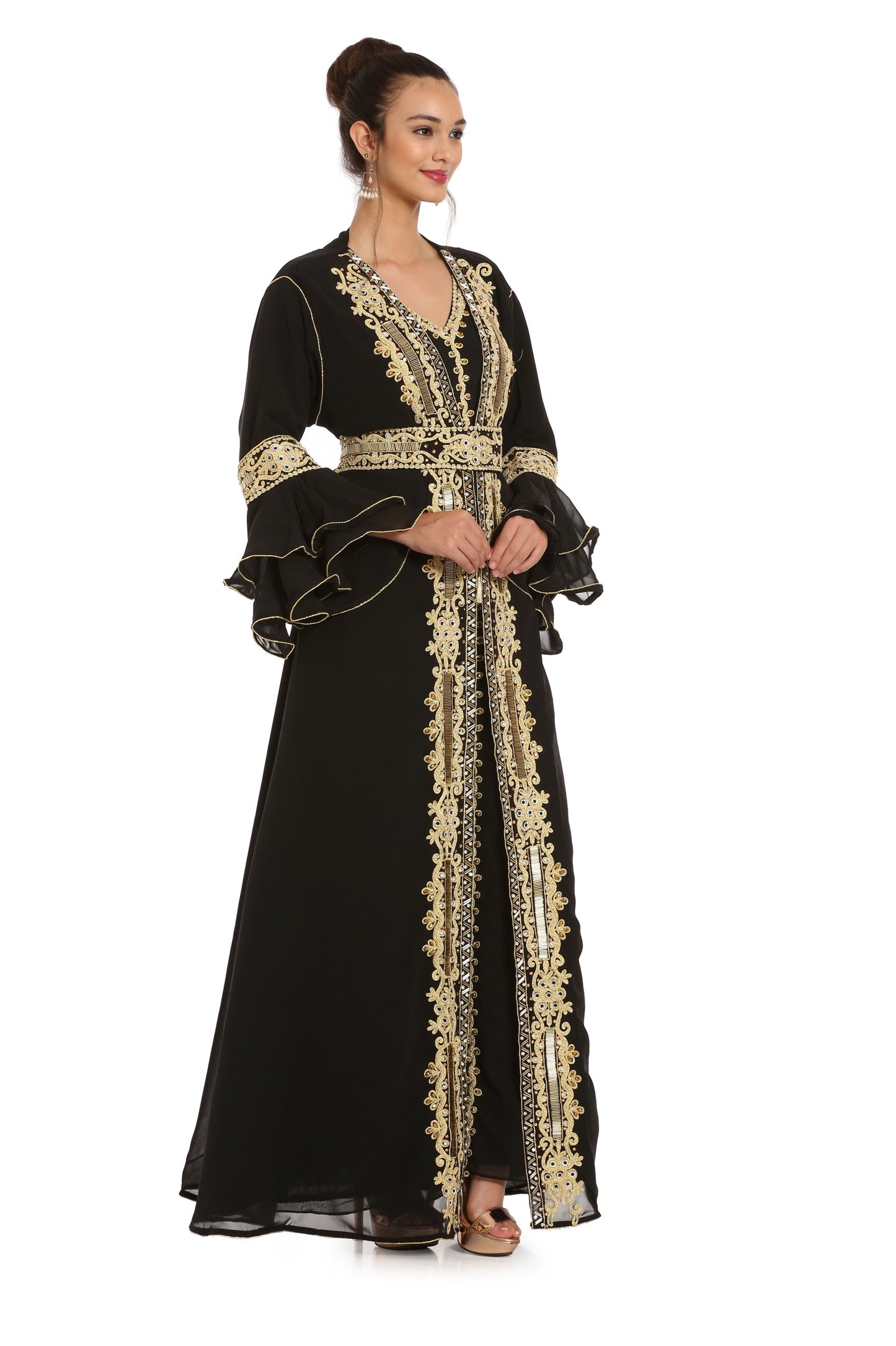 Black Abaya Kaftan Henna Party Dress with Long Bell Sleeve - Maxim Creation