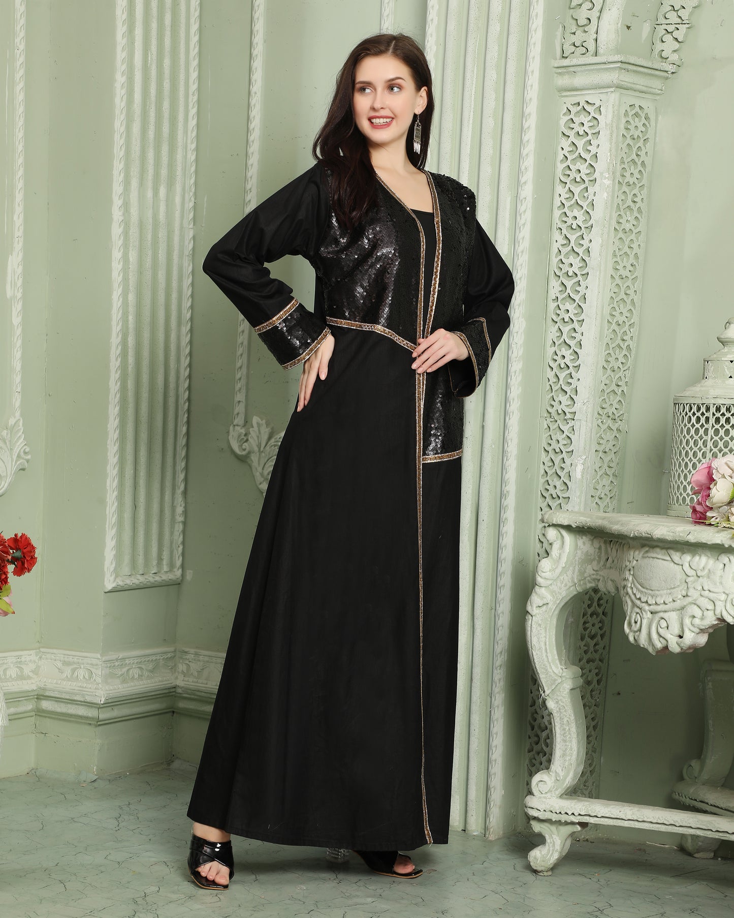Designer Sequin Style Black Kaftan With Cut Dana Work