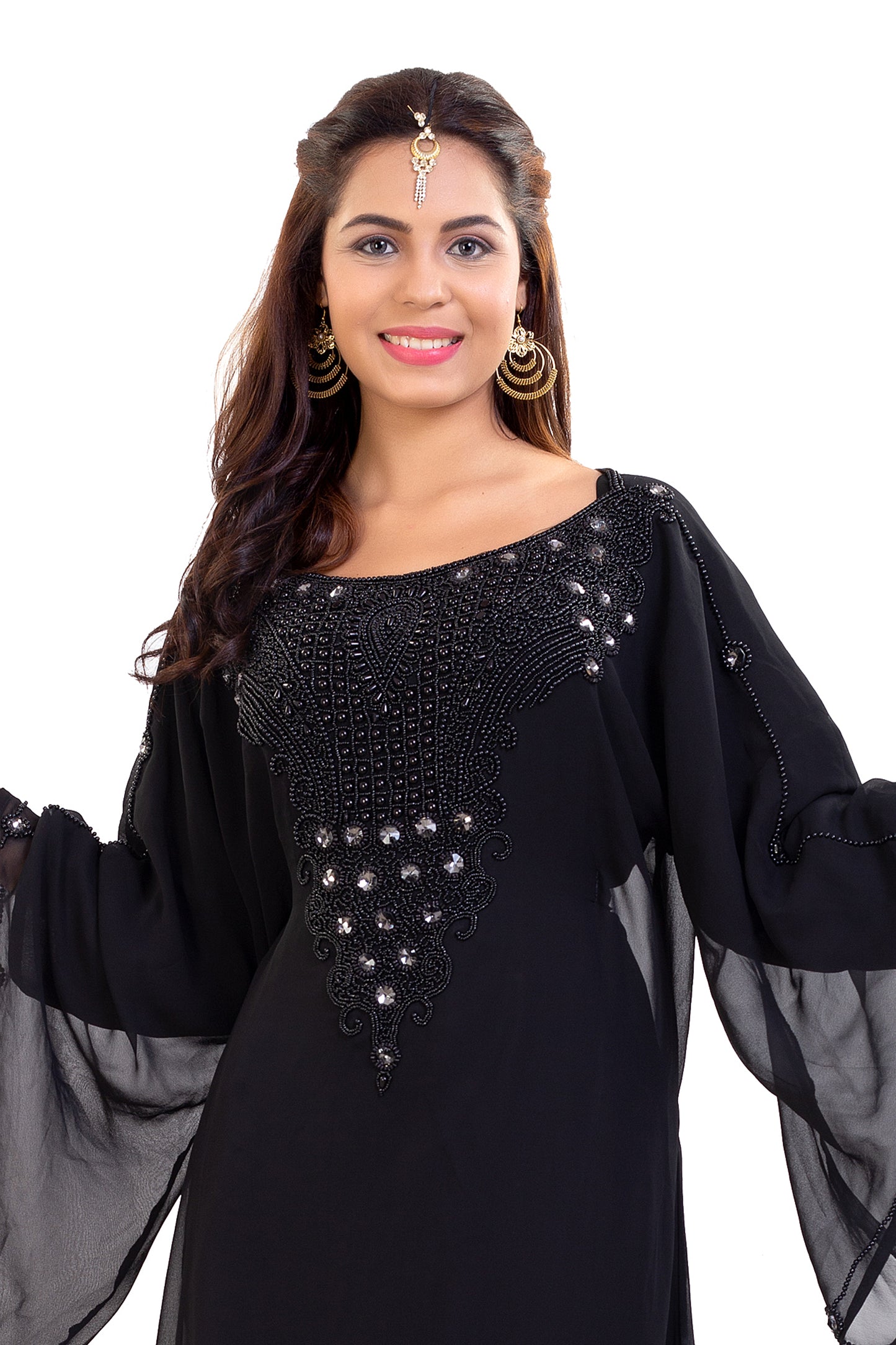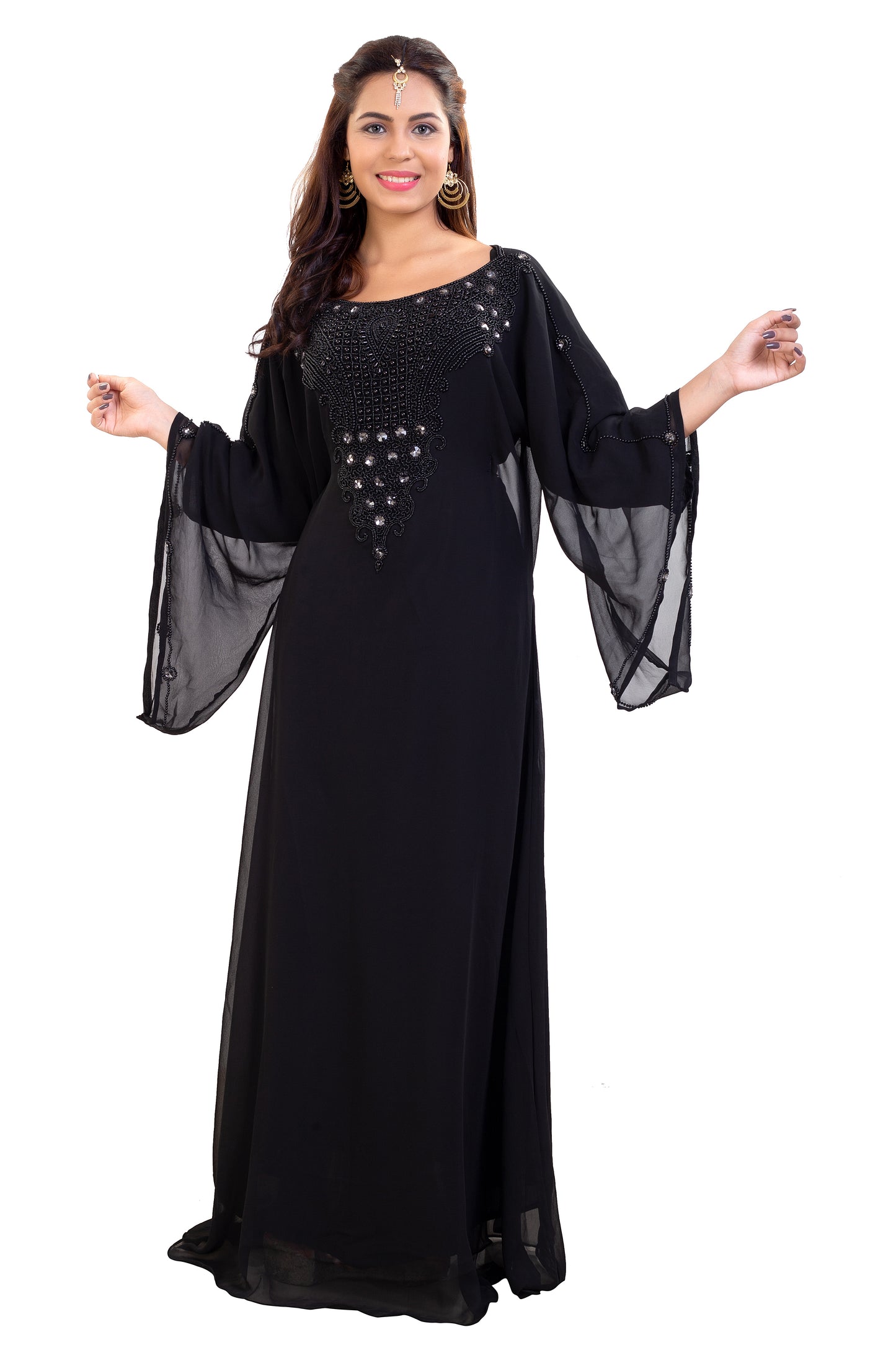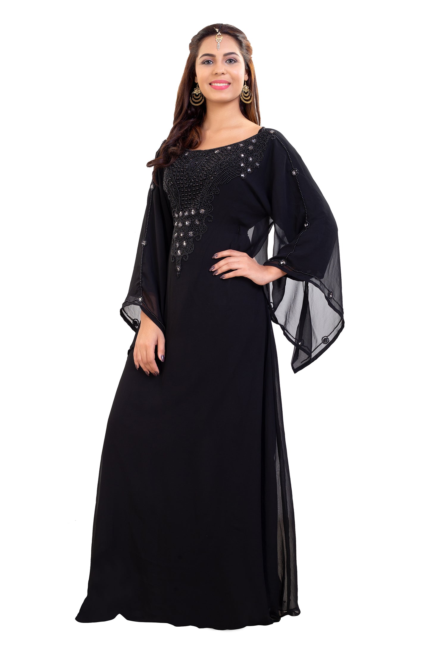 Farasha Maxi With Black Stones Embroidered Gown - Maxim Creation