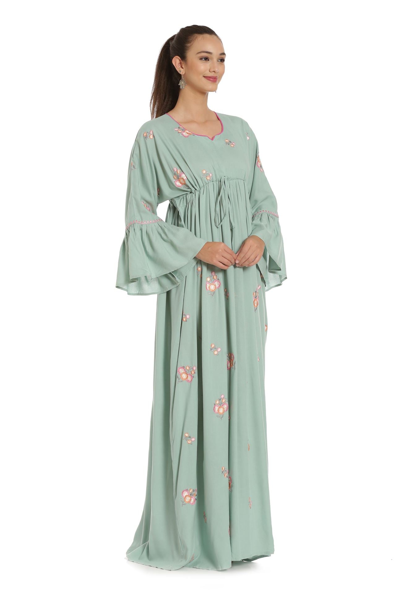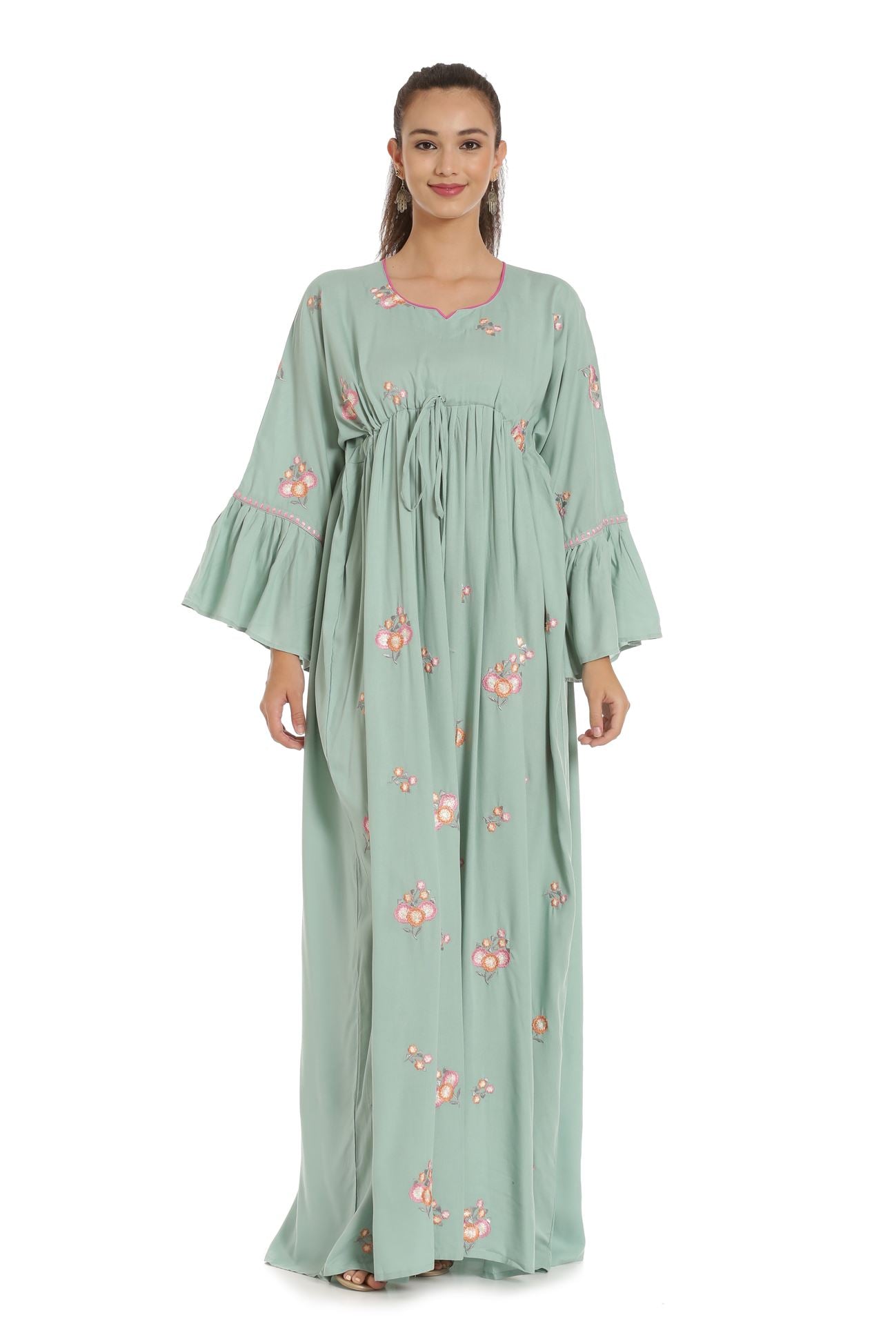 Dubai Kaftan with Threadwork Embroidery Party Gown |