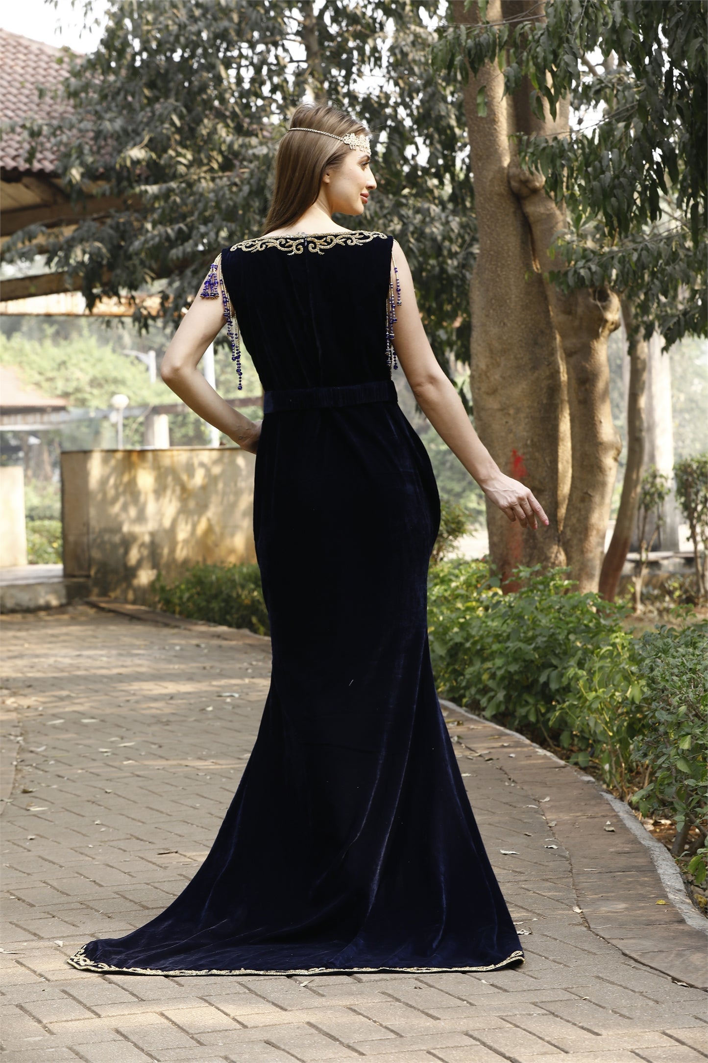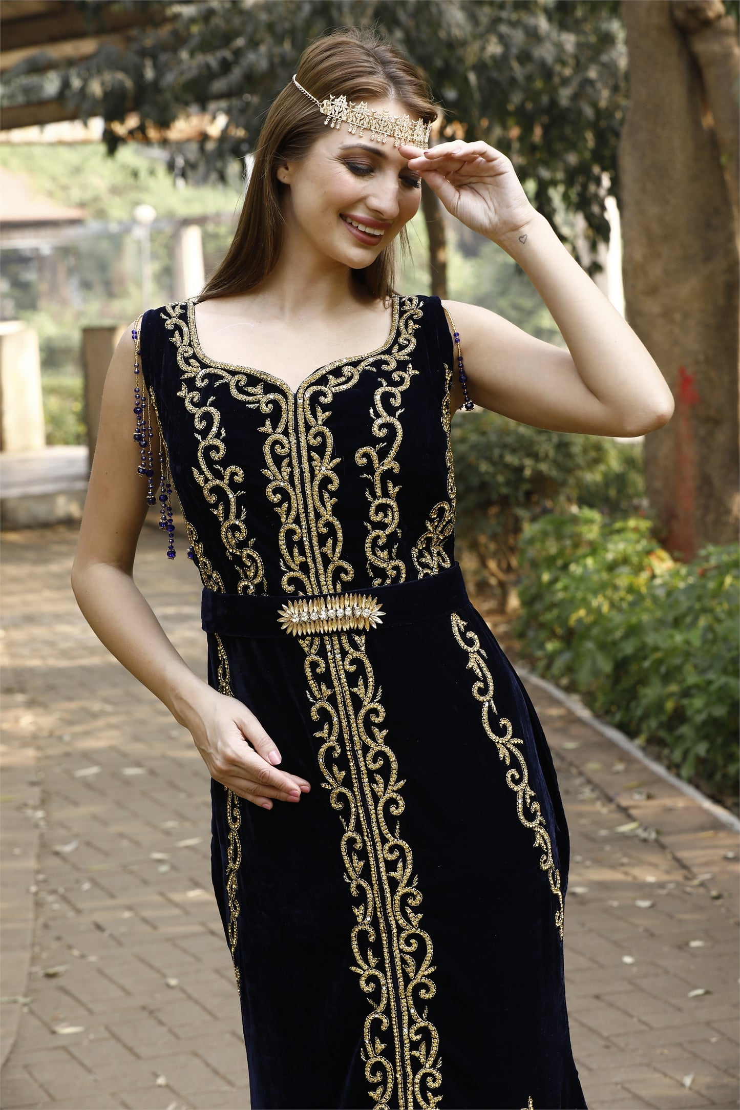 Arabian Ball Gown with tail Embroidered Bridal Caftan in Velvet