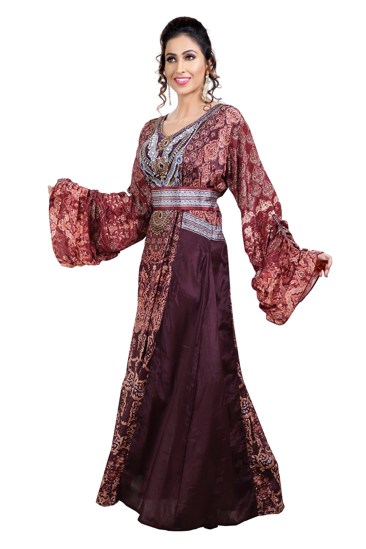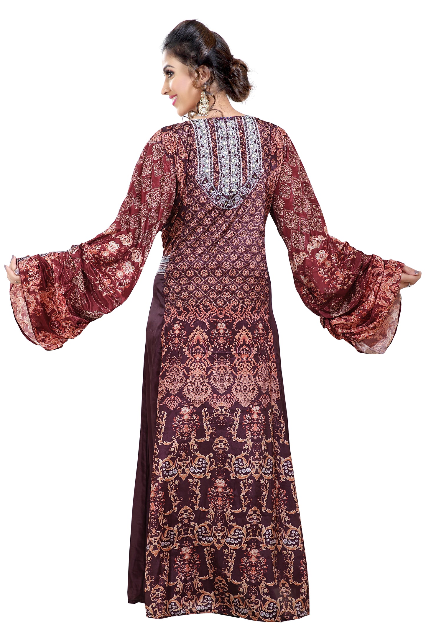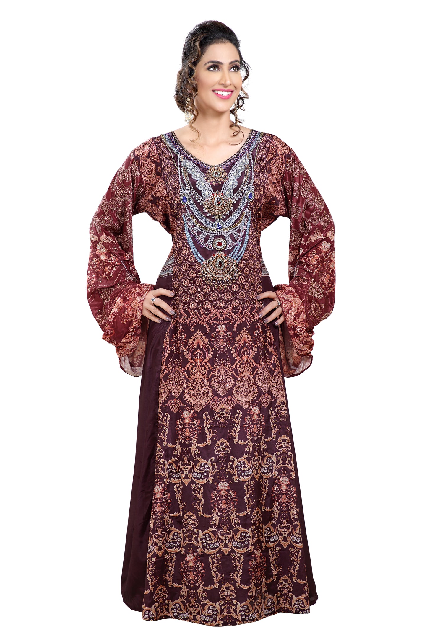 Arabian Dress With Mix Embroidered Digital Printed Kaftan - Maxim Creation