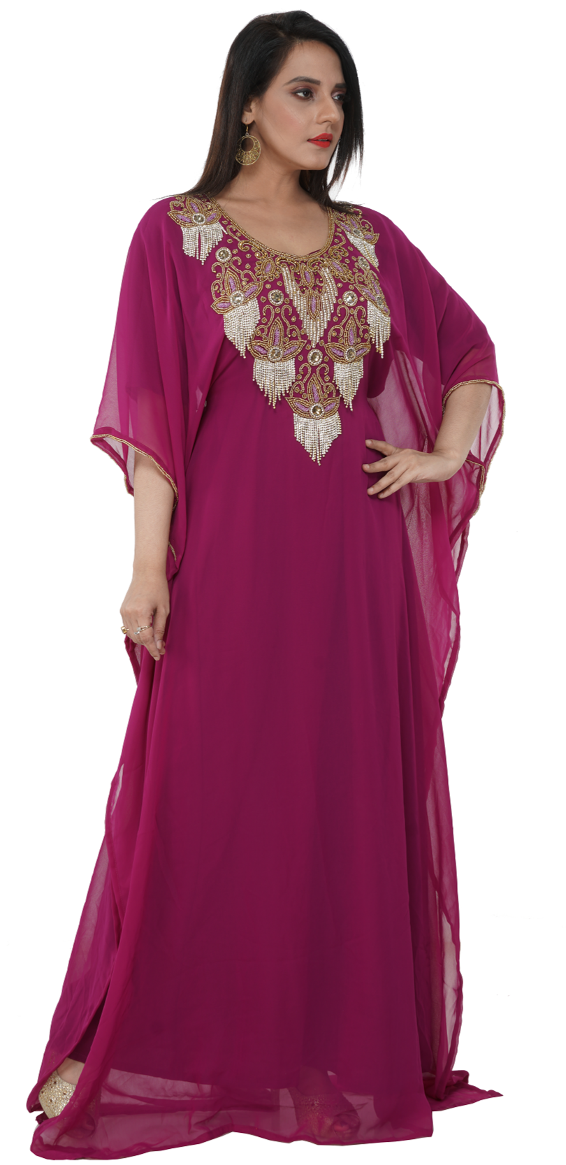 Ravish your look with this wine color dress. It has a scoop neck design and golden & silver hand embroidered work. Mainly done by our in-house designer and artisan. This dress come with 1 pieces of set. |