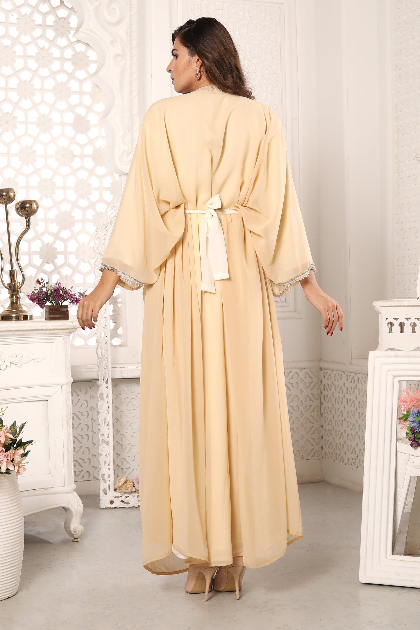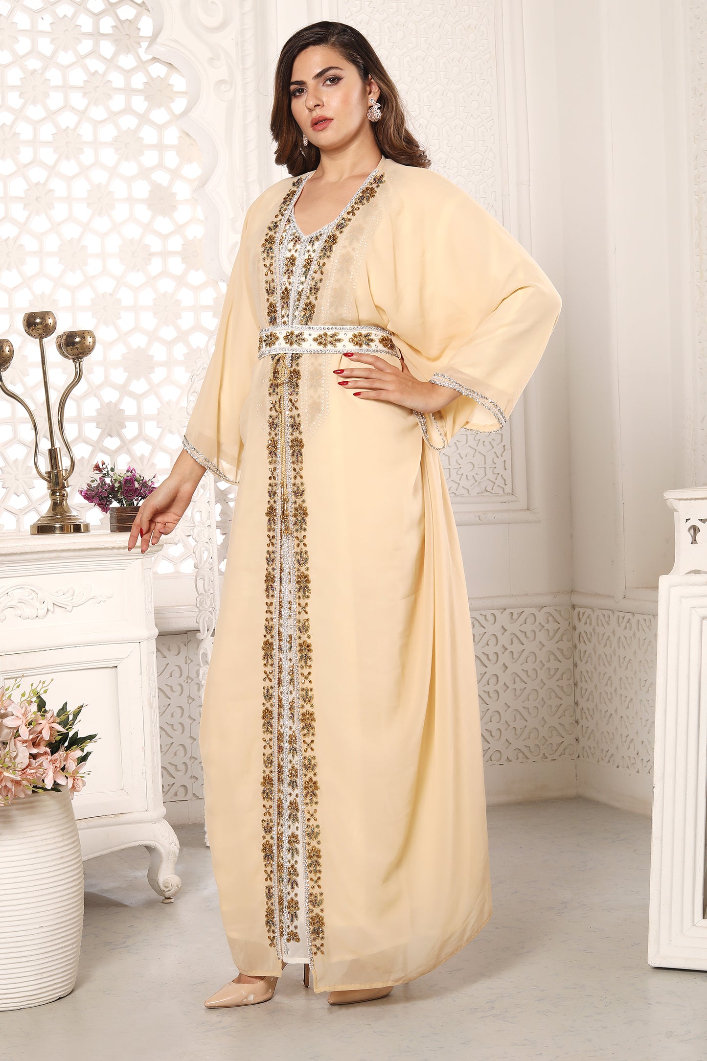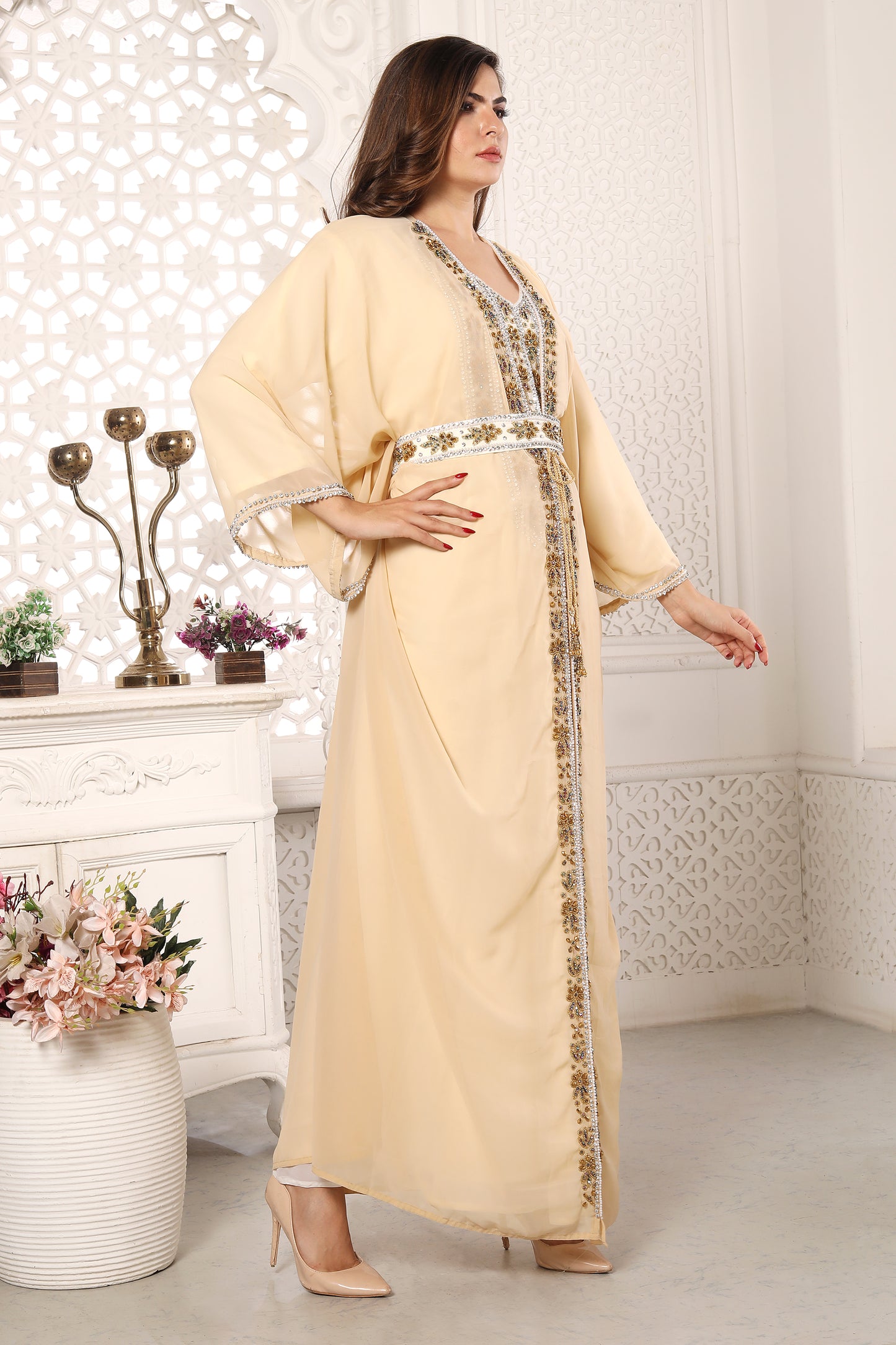 Traditional Dubai Kaftan for Eid Takchita Beige Dress for women