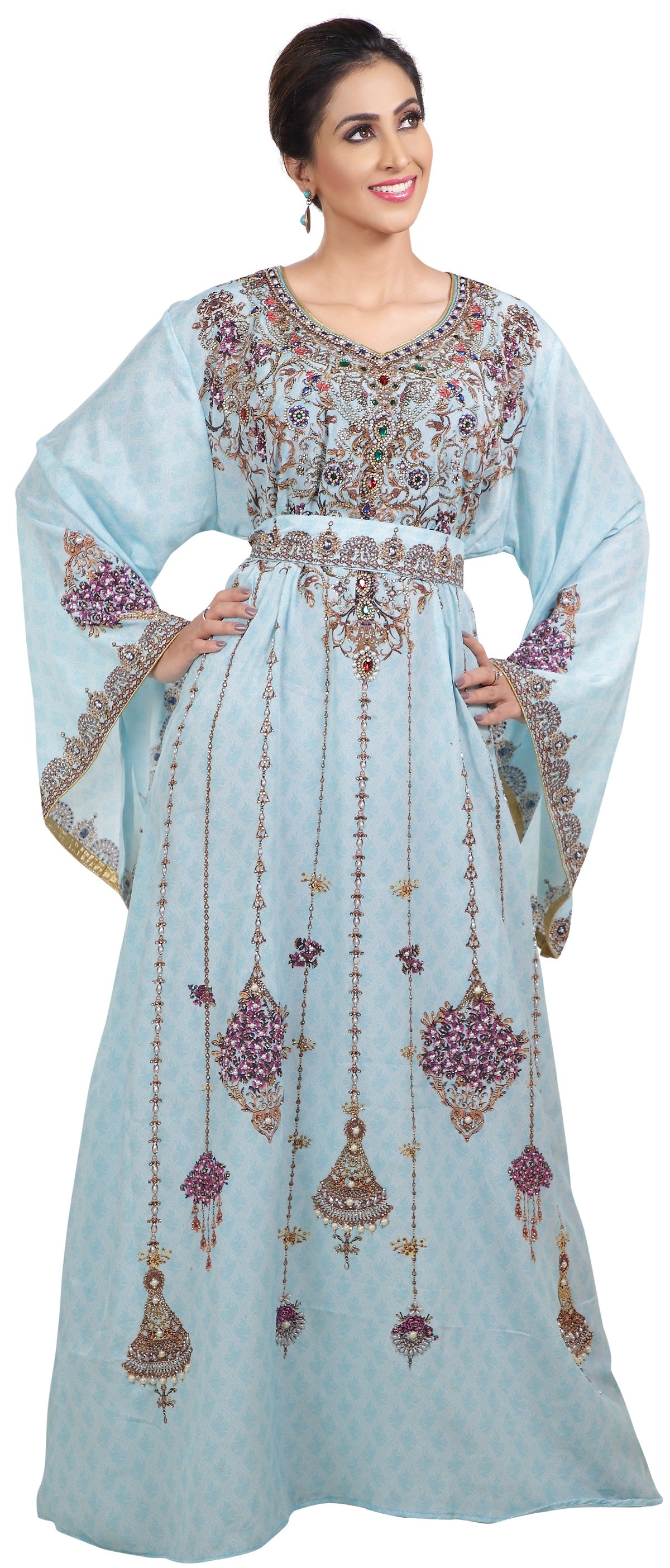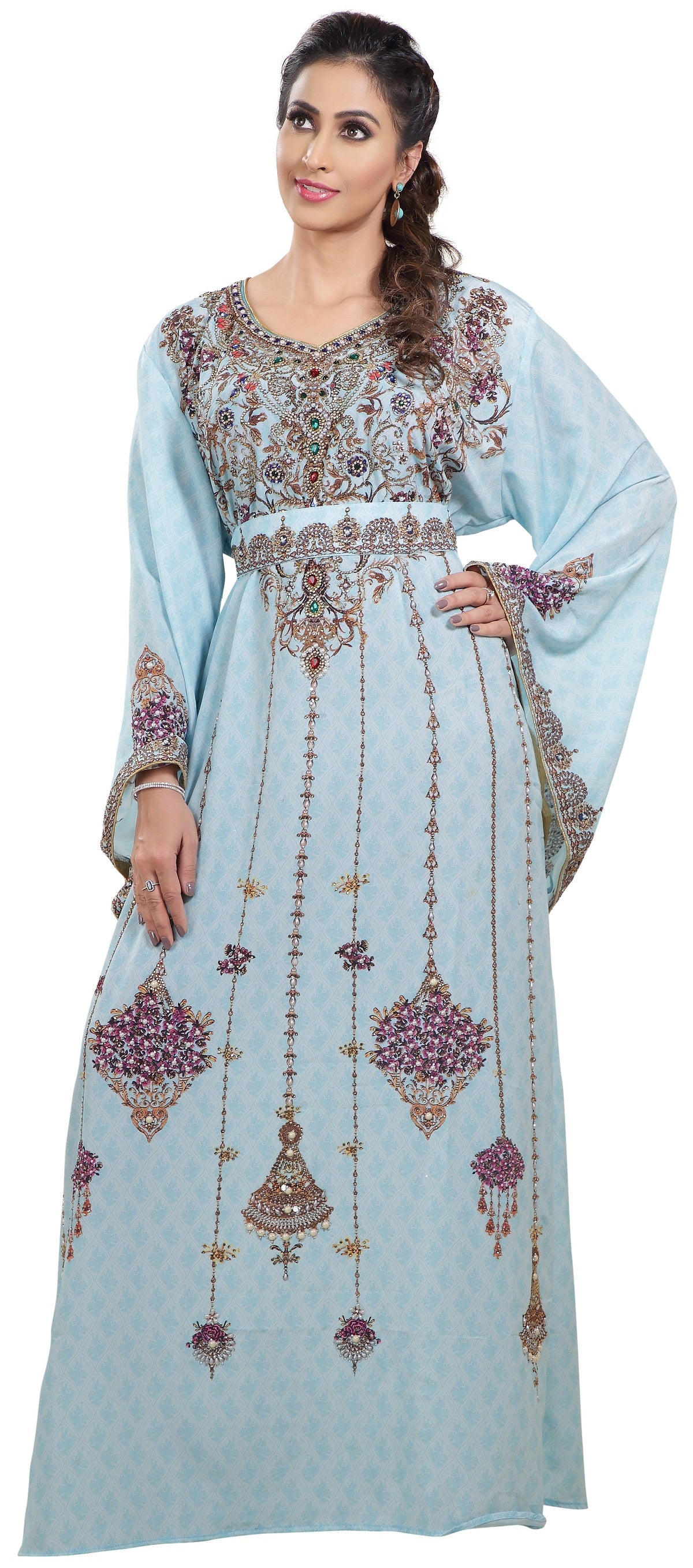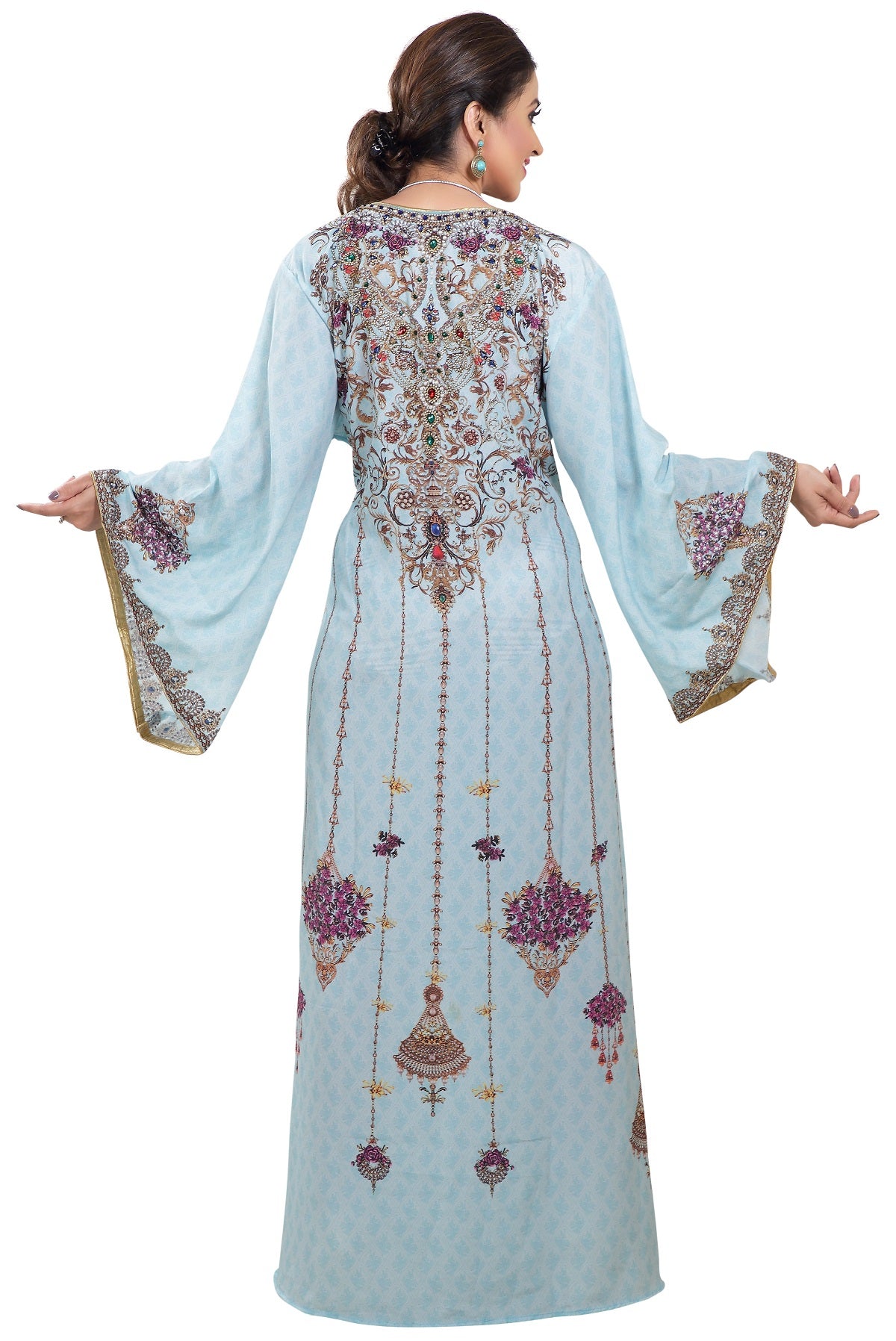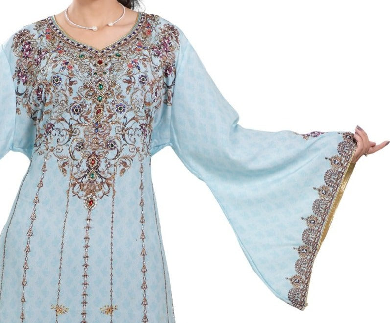 Printed Dubai Kaftan with Floral Embroidery - Maxim Creation
