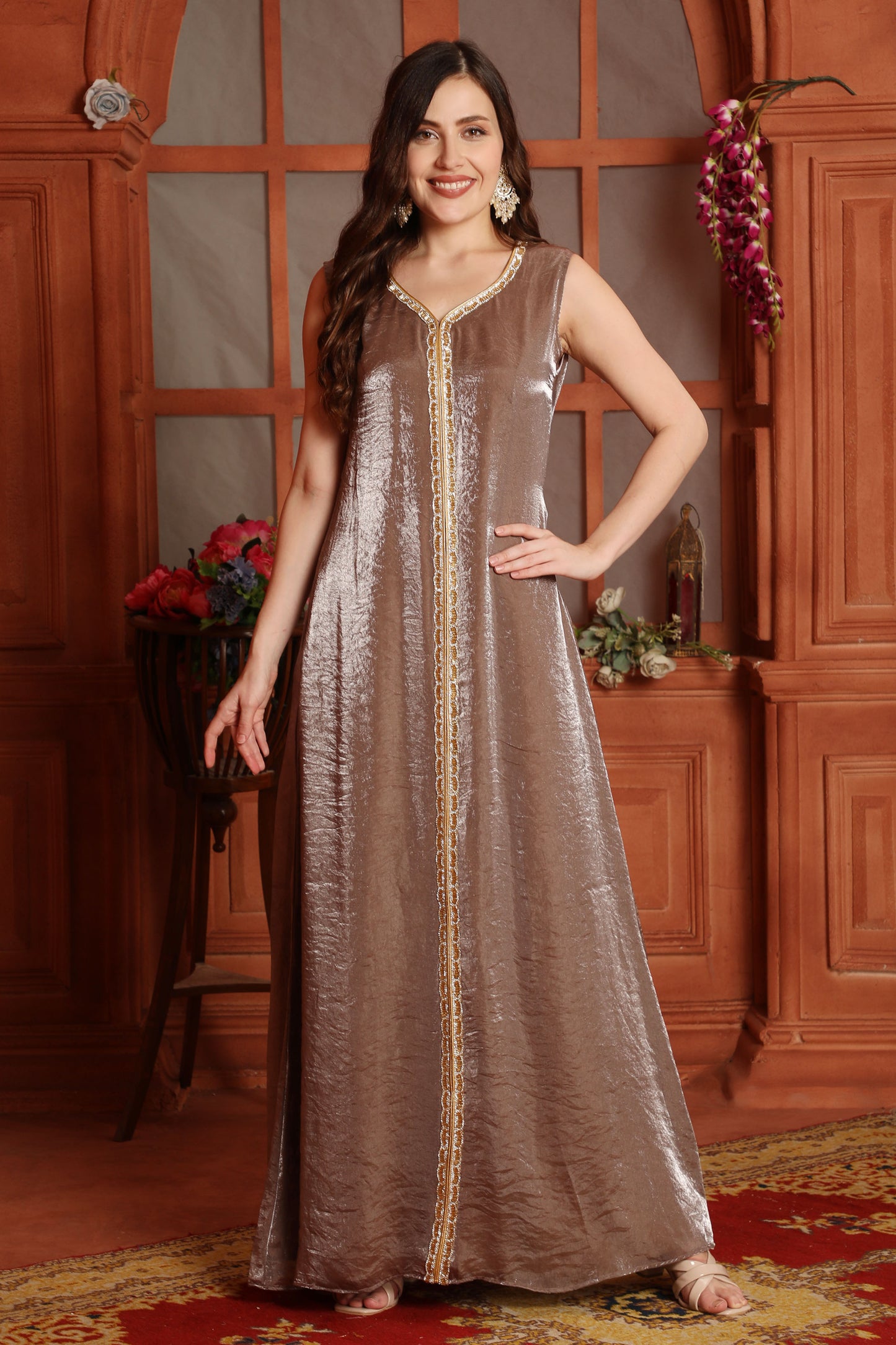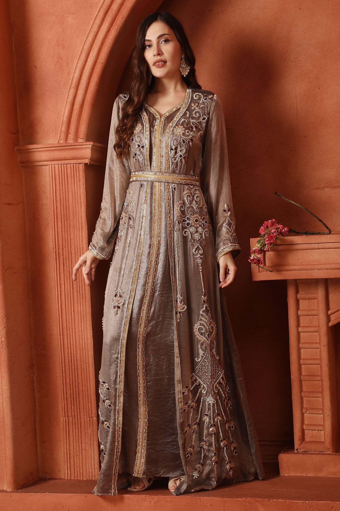 Embroidered Wedding Dress with Two Tone V-Neck Jacket